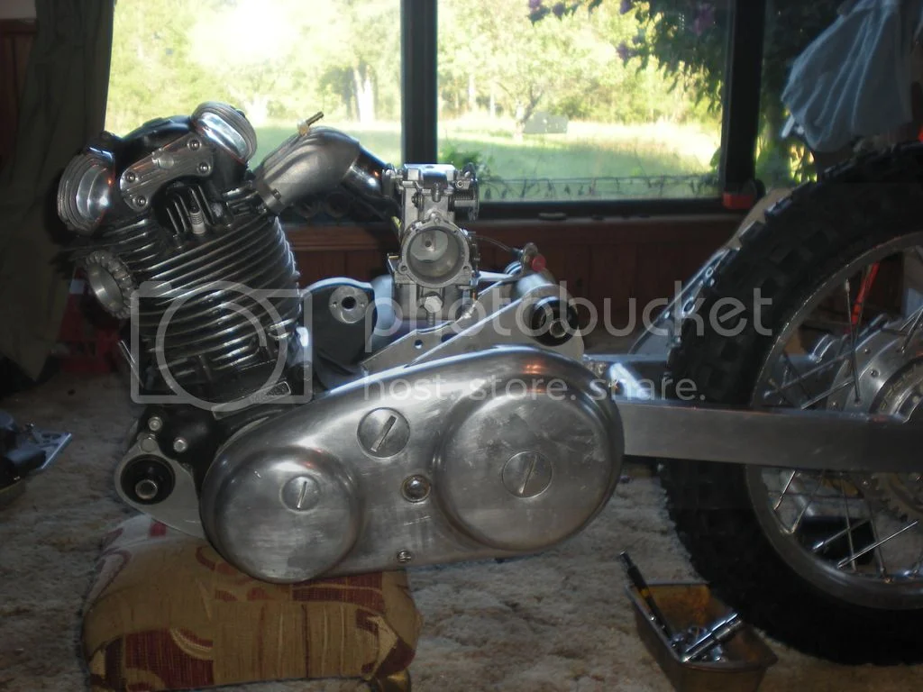 Looking at the pics on facebook the 920 with Maney cylinders is still there in the frame with the Ohlins rear shocks and knobby front tire. I do not see the TTi gearbox anywhere, but it could be hidden under something. Roll of the dice thinking either engine is still functional. What I see is a $4500 ticket to burn more money. Good luck to whomever buys that pile.
