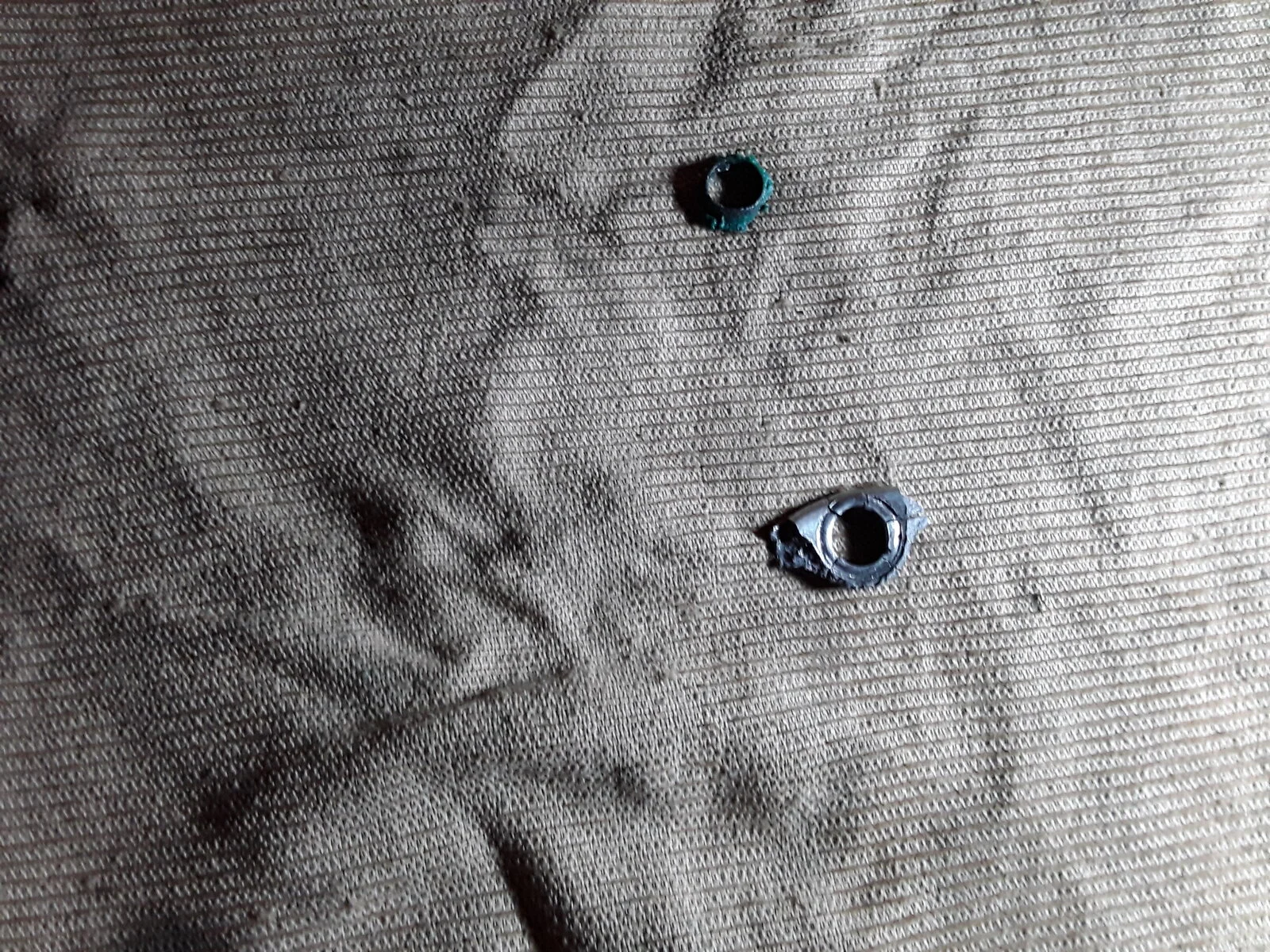 The damage is the top hole of the gearbox inspection cover. When loosened, there was a quiet crack. All bar one of the 5 pieces were found on my mat and the frame. One piece was sitting inside the gearbox on top of the kickstart spring. Haven't told my wife about using her tweezers.