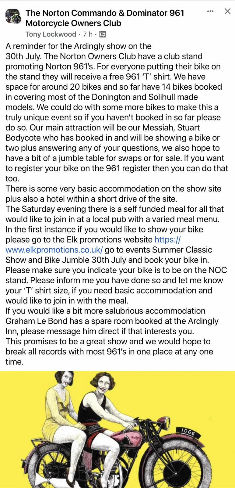 Colin Cheney has invited us all back again this year to the local NOC annual event , Nortons there will be of all ages & models .