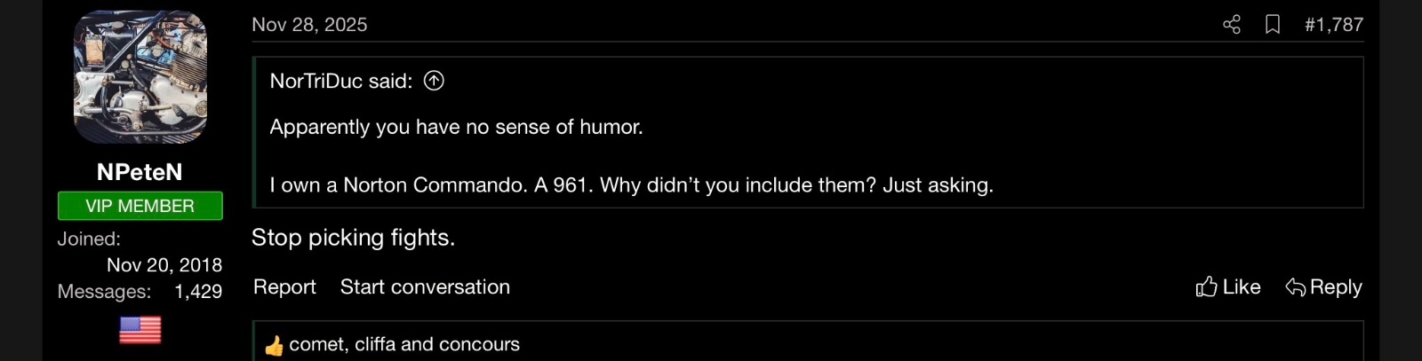 The only new Norton model that I’m interested in purchasing, once I’ve seen the road tests (and the price of course), is the Manx R. Ya know, if we’re being ‘factual’.