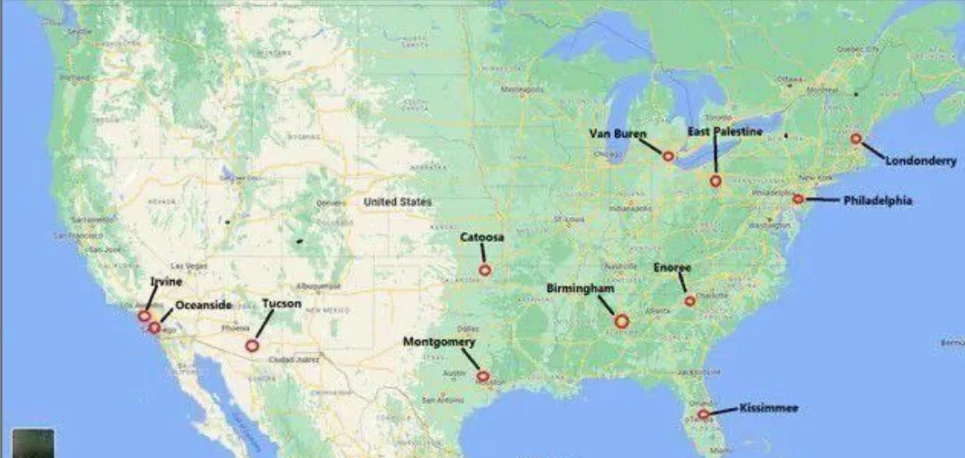 Below is a toxic chemical incidence location map of the last few weeks that was sent to me....
