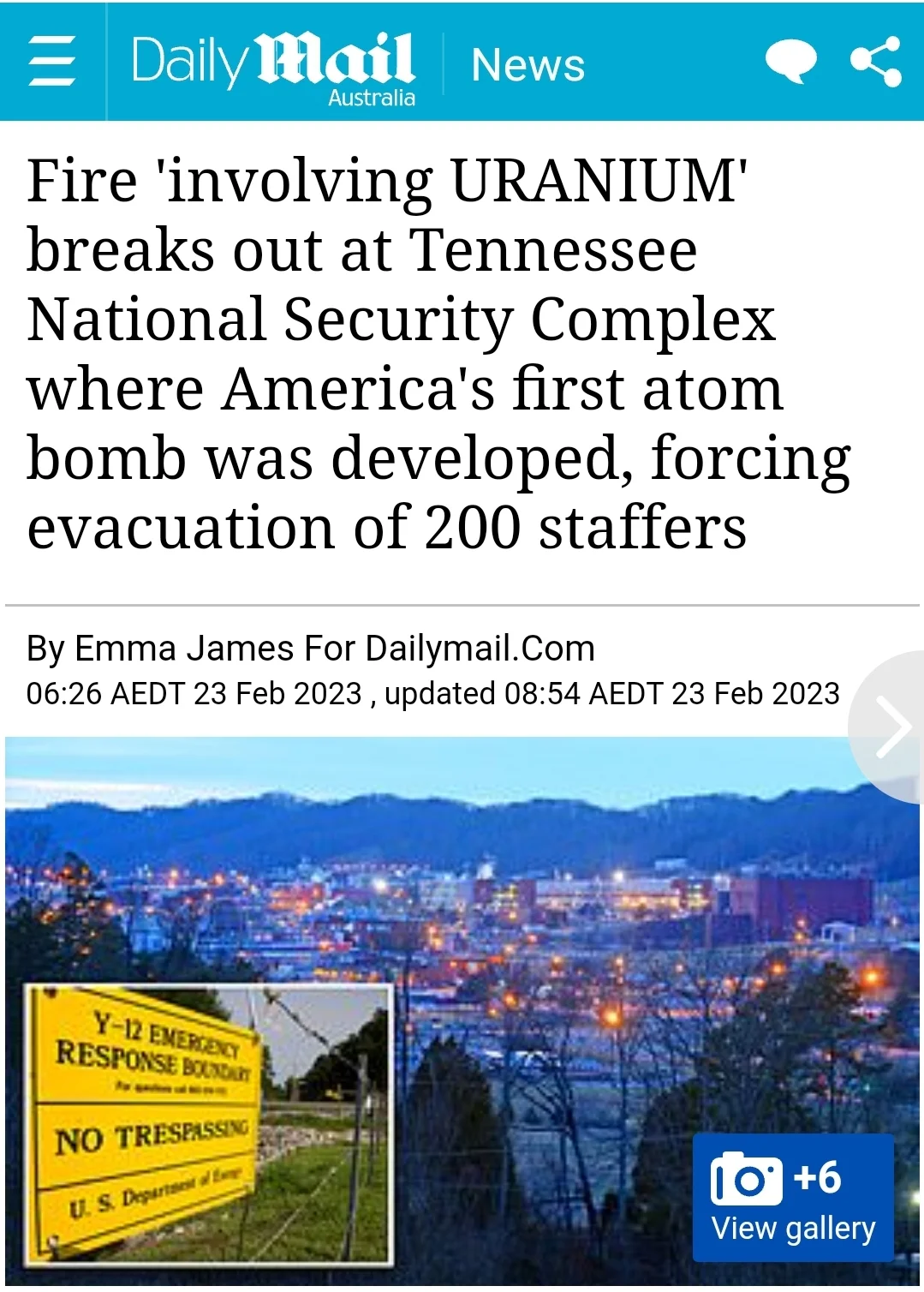 On Wednesday, a fire involving uranium occurred at the Y-12 National Security Complex in Oak Ridge, Tennessee. Emergency response personnel were dispatched to the scene, and a spokesperson for the complex confirmed that all employees had been accounted for and there were no injuries.