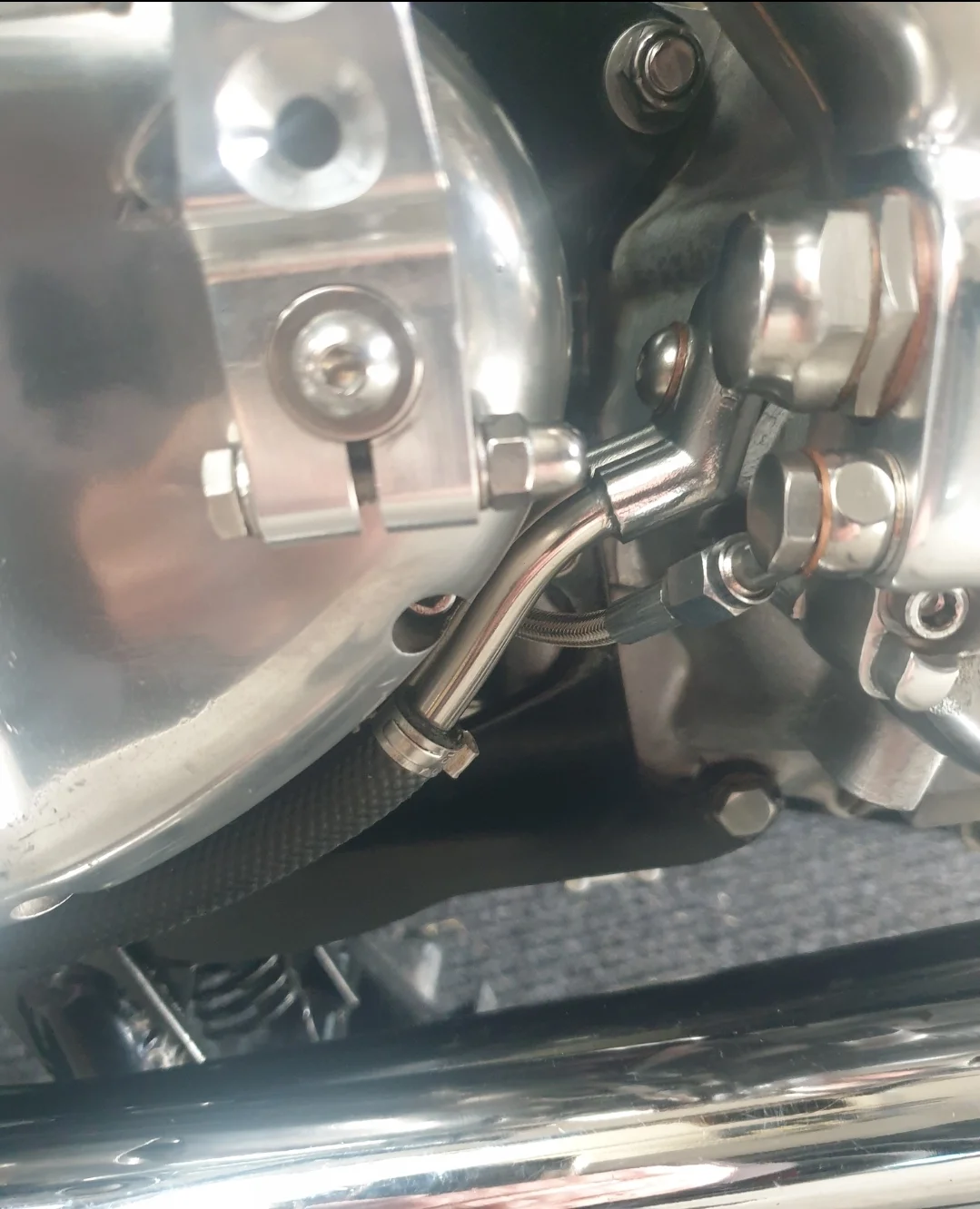 That's an idea where you might be able to make some money. Every time I adjust a primary drive tension or install a clutch cable, I think there's got to be a better way to route the hoses so they aren't a PITA. Do you have any pictures of the rest of the routing?RGM... Sand cast stainless block with tig welded pipes flipped and bent to suit by me![]()