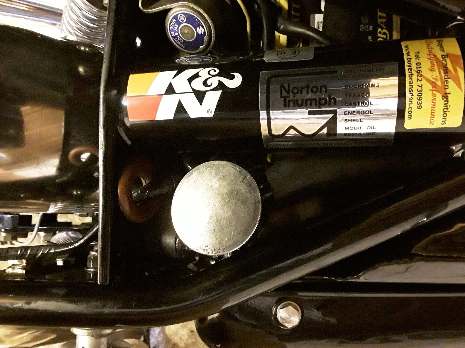 Happily my exhaust header has finally seated where it no longer loosens. I've bent over the retaining washer. So that's one tightening job each stop finished with, to be replaced with tightening the oil cap!