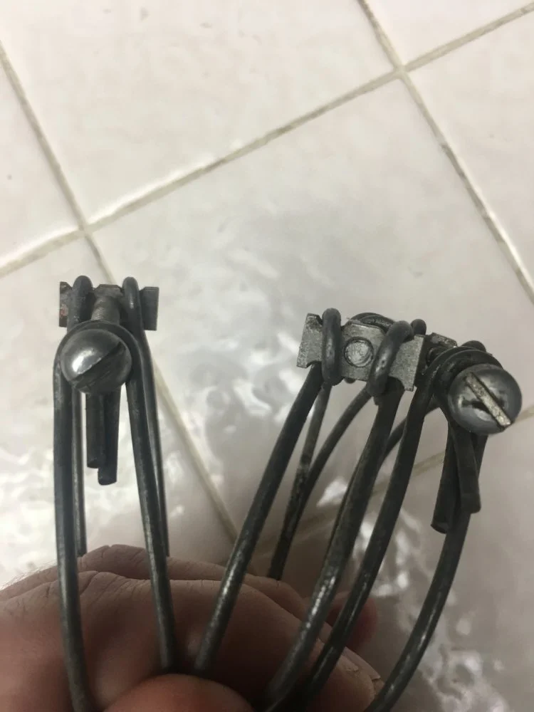 Looking for the original type gaiter wire clamp with the slotted ROUND screw head. Anyone have a source. I only need one lower (smaller diameter one). Old patina OK.