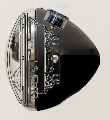 It appears Emgo offers a British (Lucas) headlight shell that would allow me to cut my own ammeter hole that would better fit a Speaker LED 7" bulb.