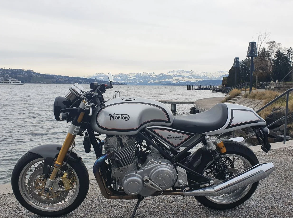 The side stand will hit firstThere is no question when seeing that , this bike is a Norton ! I thank you for doing this and posting. Every time you take your bike out , you are helping to verify that Norton is still alive . Everyone must remember to ride their bikes , appreciate what they have and let everyone see we are still here . You asked for more ground clearance , what is touching first the mufflers ?
