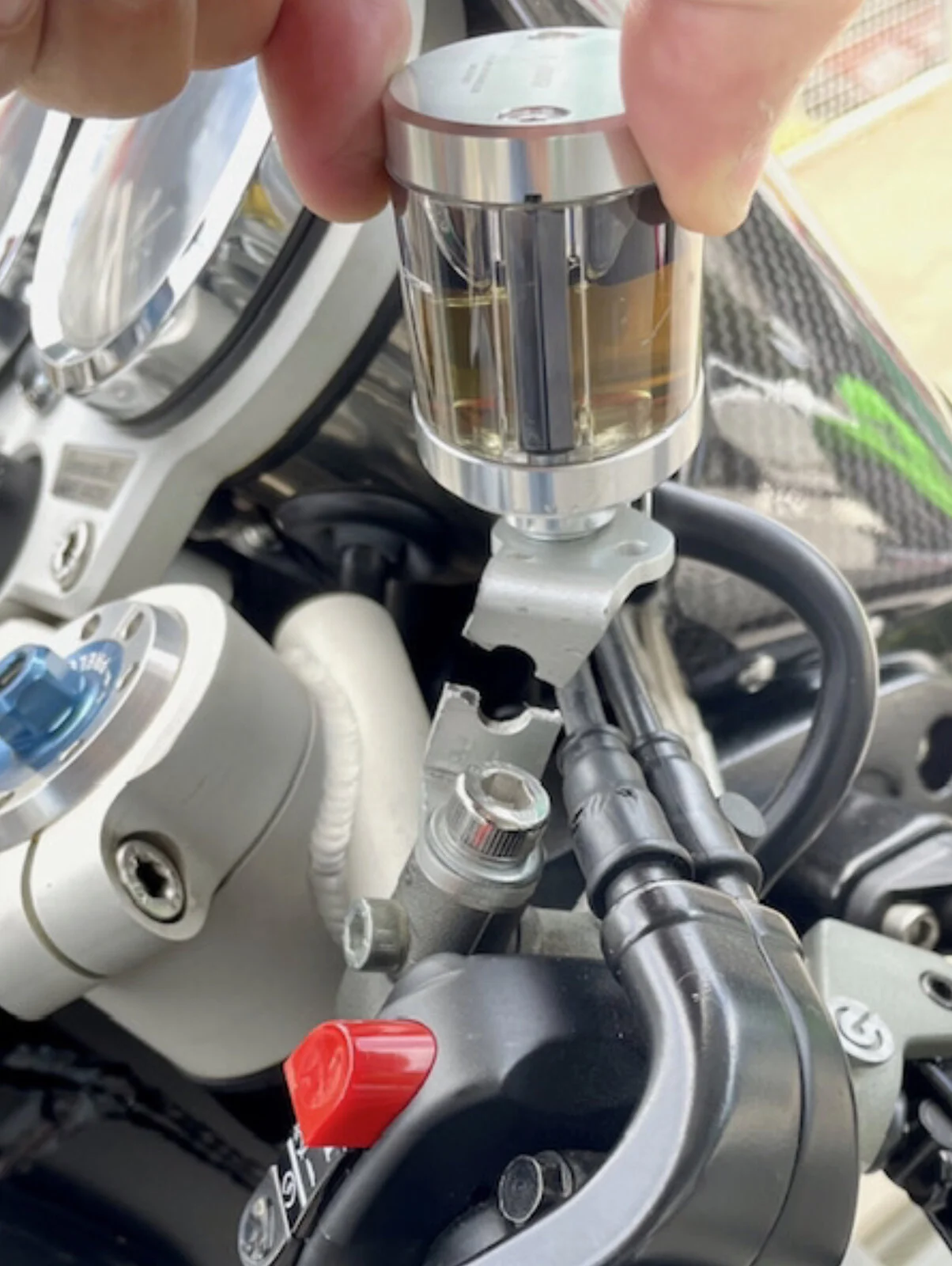 Good point V2D3. The dealer fitted the reservoirs during a service and for some reason used a genuine Rizoma mount for the clutch reservoir but the original 961 bracket for the front brake reservoir. He reshaped the original mount to get it to present correctly and no doubt weakened it considerably as a result - vibration would do the rest. Gonna fit the same Rizoma mount on both sides - should sort itAs good as they look, I think the added weight adds even more stress to the bracket as it’s a known problem with the plastic reservoirs.