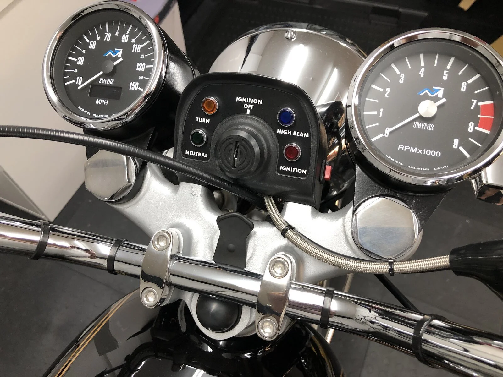 Last job is to convert the positive earth system to negative earth with a Motogaget M.Unit blue.