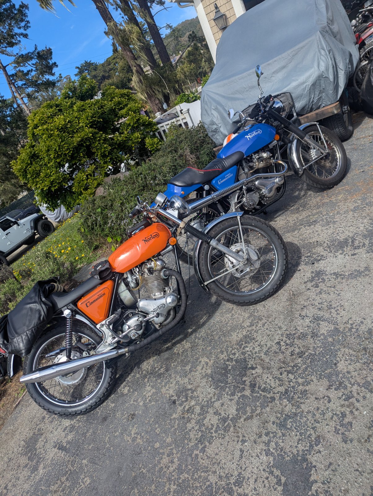 Yellow certainly suits the Commando. One question though, what’s happened to the rear brake cable? I can’t make it out clearly, but It looks like it’s either missing or routed strangely.Only 'mine' temporarily.