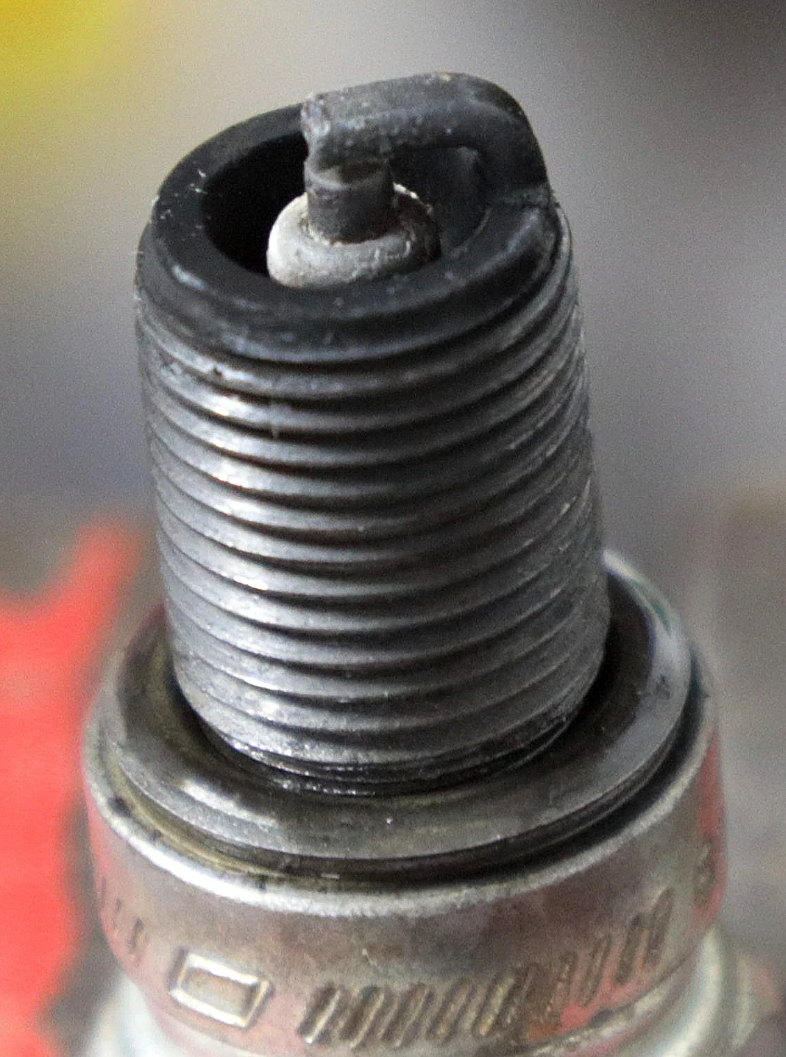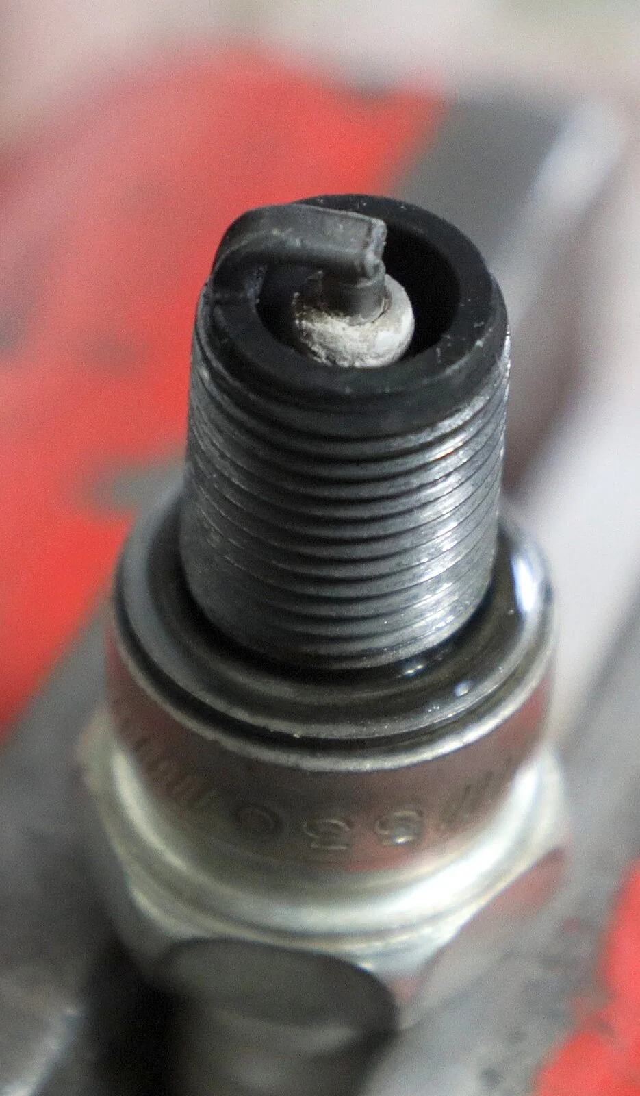 The crust on the insulator looks like residue from petrol that must be different from mine, or an additive.