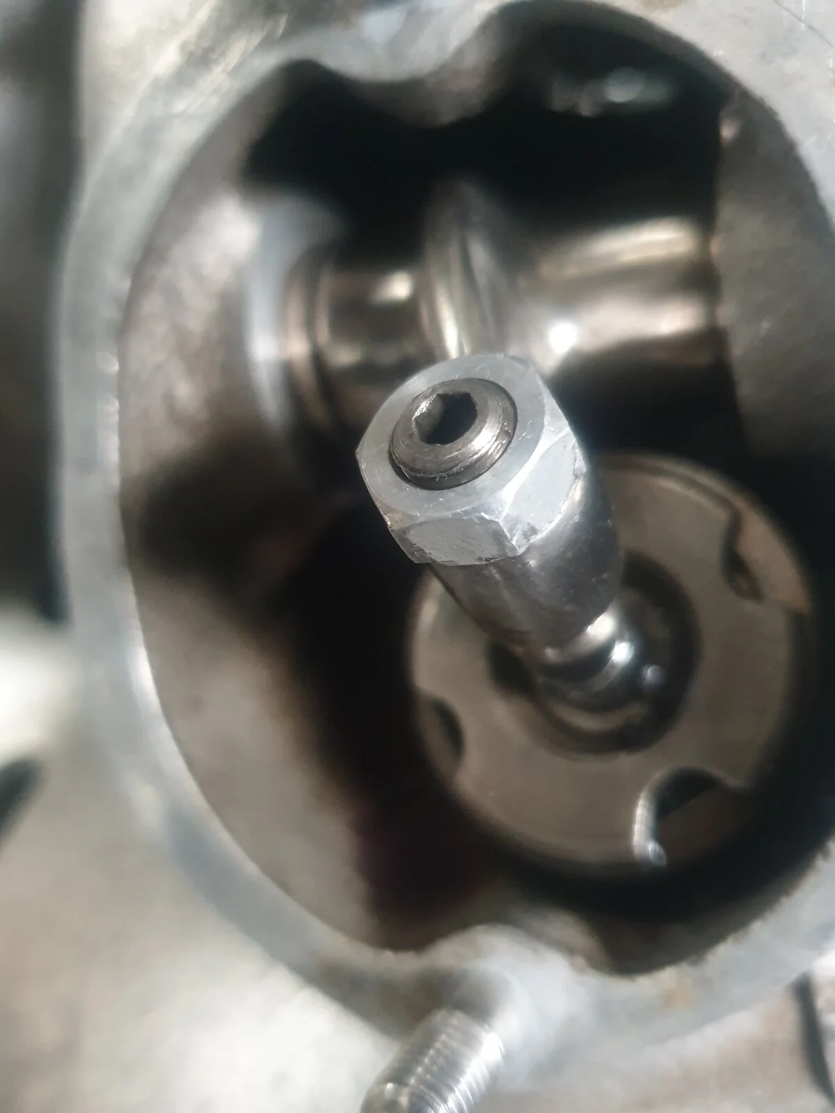 While assembling my 850 Commando cyl head I noticed that one ex valve rocker valve adjustment screw is not contacting the center of the valve stem (unlike the others)