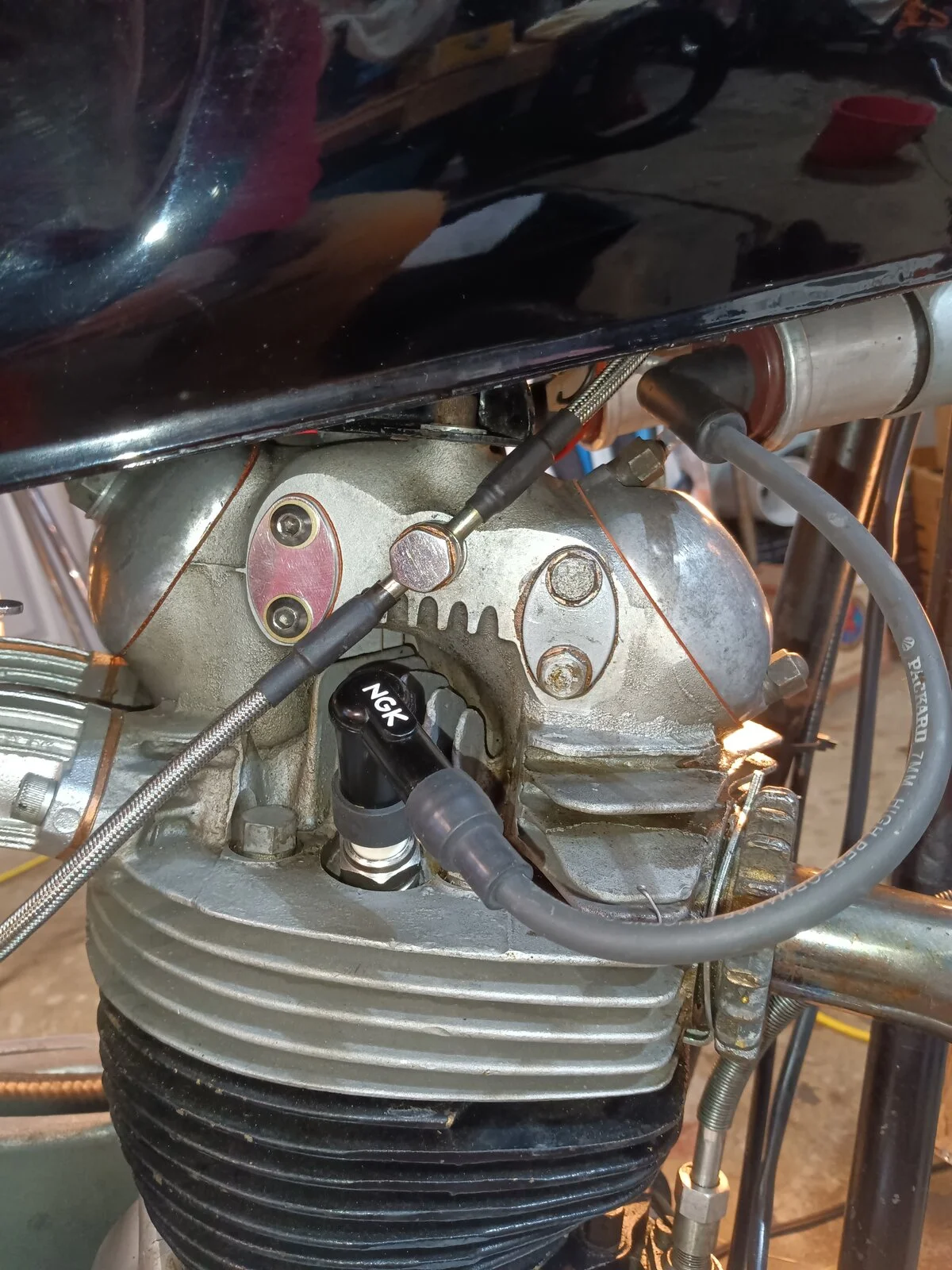 My problem is that the former owner installed the shafts in such a way as only one will fit on the head. He also left one of the rocker shafts standing proud of the head, and shimmed it with a piece of steel to make it fit. He says this is normal. I think they put the keepers on the covers to keep the shafts from rotating. So, I don't think I should ride the machine until I take the head off to relocate the rocker shafts properly. Last photo is of the spacer that this gentleman made. Any thoughts or opinions?