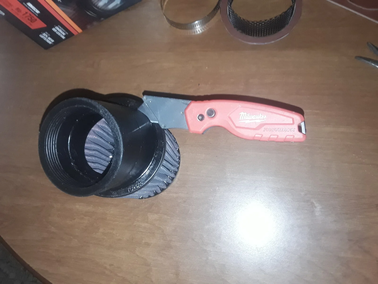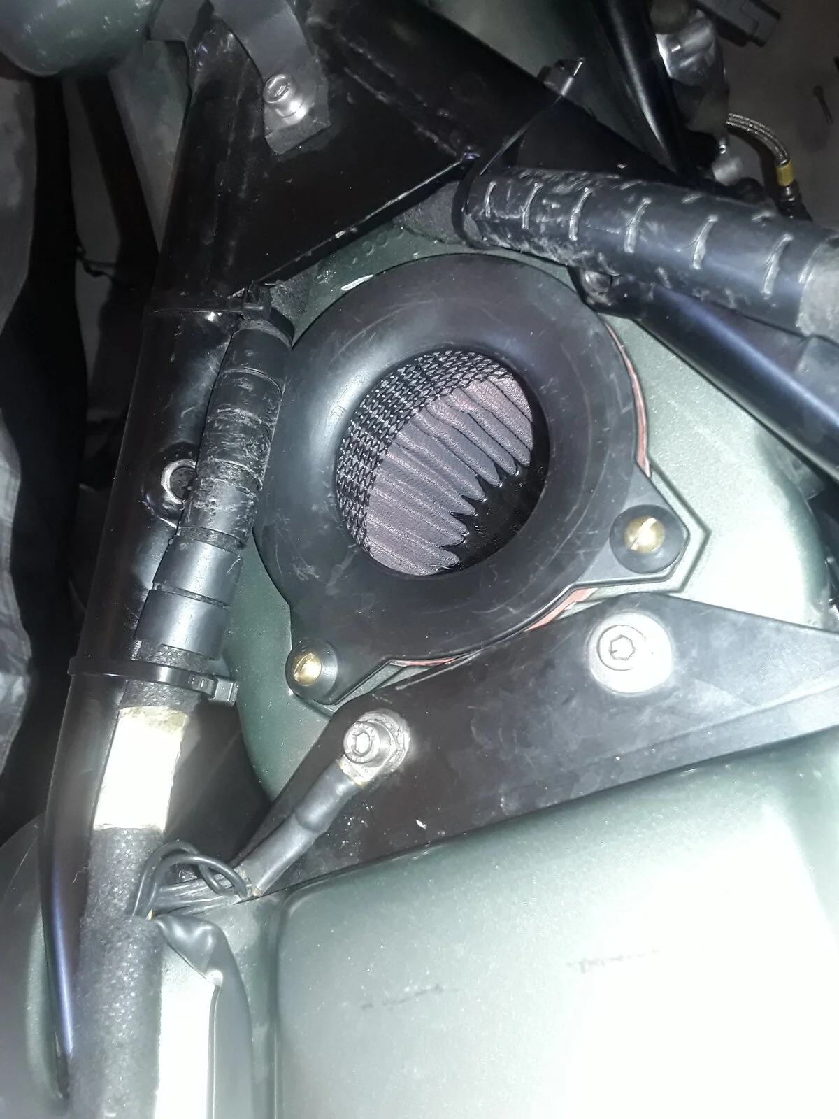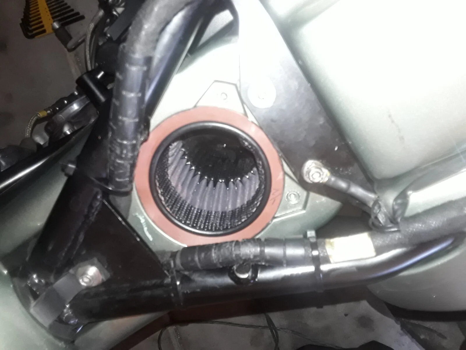 Cost is around $50 complete. BMC filter with shipping to USA is well over $100. Filter is washable and readily available on ebay. The wire cage is a pencil holder also on Ebay 4 pack is $10. You'll have 3 extras. Use whatever flange rubber you choose, cut inner dia 3 1/4 and OD 4 1/4 .Cut pencil holder as pictured to allow filter to slip into airbox. You will need to fold the cut pencil holder to get it to fit then spread it out once inside the filter.This produces a very tight fit and needs to be forced into the airbox the first time but then removes easily. Good airflow. The plastic hold down ring needs to be spaced up a bit with longer m5 bolts. Good air seal routes air though filter and not around. For people who like to save money rolling their own.