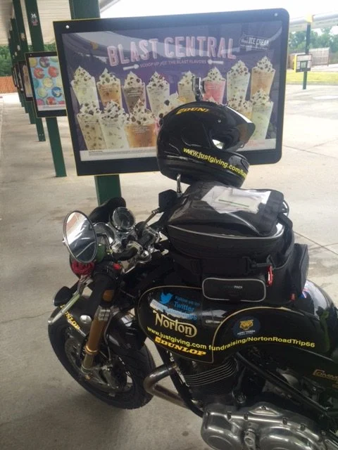 So few days left here now, bike goes back via the Panama Canal on Monday, 8,500 miles in 8 and a half weeks, serviced twice ,first time by Norton Canada as a gesture ,eternally grateful for that ,fresh oil & the 107 bike upgrades have worked a treat , second service at Team MCC Chicago & paid the going rate, two new tyres donated by Dunlop at 5,700 miles again very grateful, bike blew a rear light bulb & used .8 of a litre of oil, temps were over 40 degree c in the deserts , will have to replace 2 indicators,overloaded a panier & another damaged by tank bag slipping , loads of petrol or gas ,consumption was low forties fully loaded & two up , cruised 55/60mph most of time , but lot of 70mph journeys on my own where possible.
