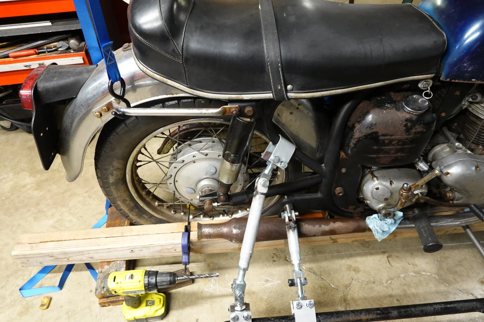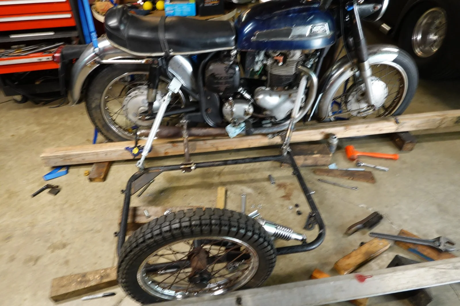 Took it down the road today, it's like a scary carnival ride! LOL Put it the basement and ck'd dimensions to find a lot changed when I put the weight in the car and my ass on the bike seat. Made adjustments , added 1 inch of toe in, raised the rear of the car. What a difference! I'll leave it alone till i get the new tire from fleabay next week.