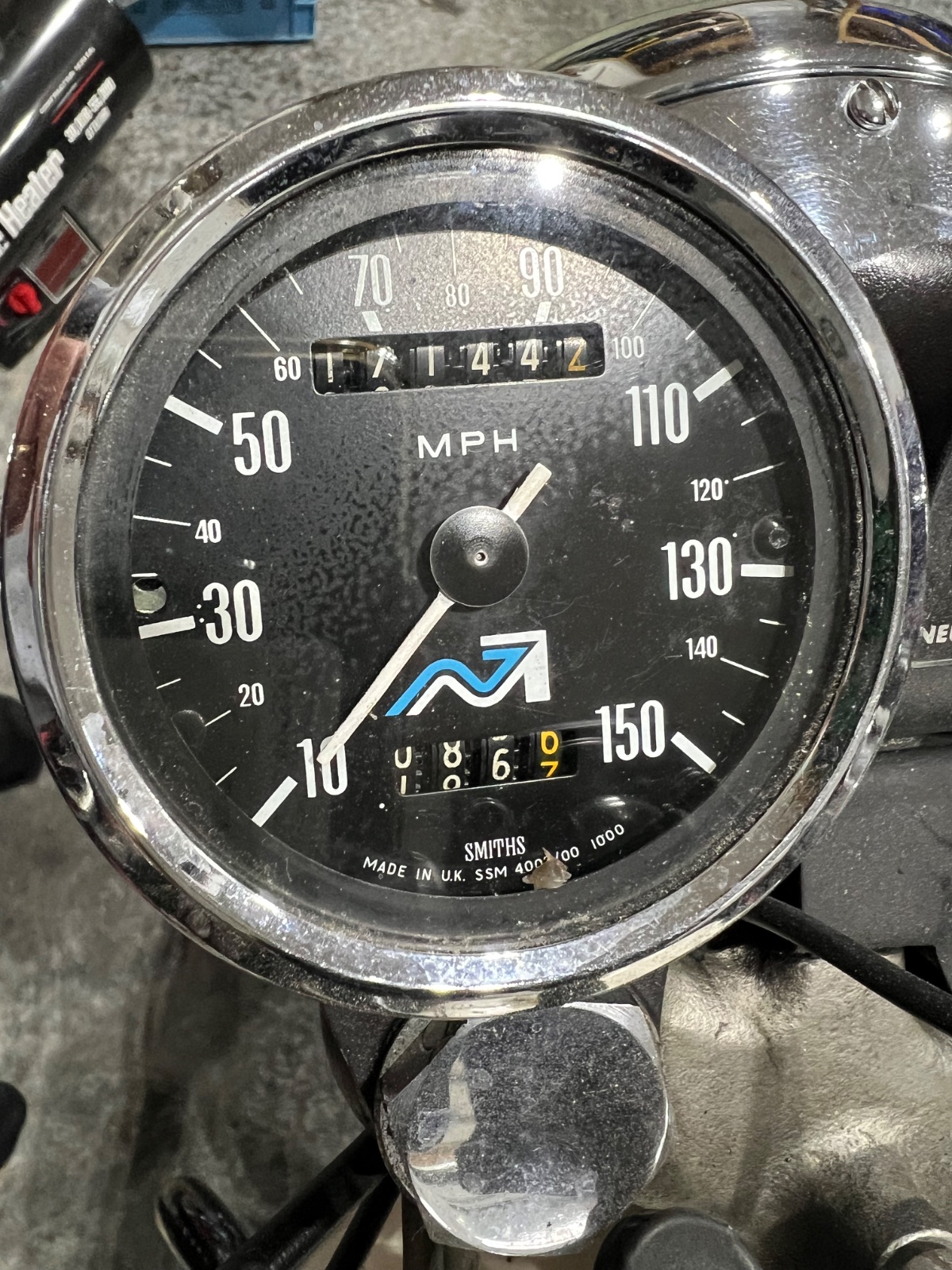 The same NVT style unit as fitted to Triumph twins, so possibly not hard to findThe correct Smiths Mk3 MPH speedo should be marked SSM 4003/00.