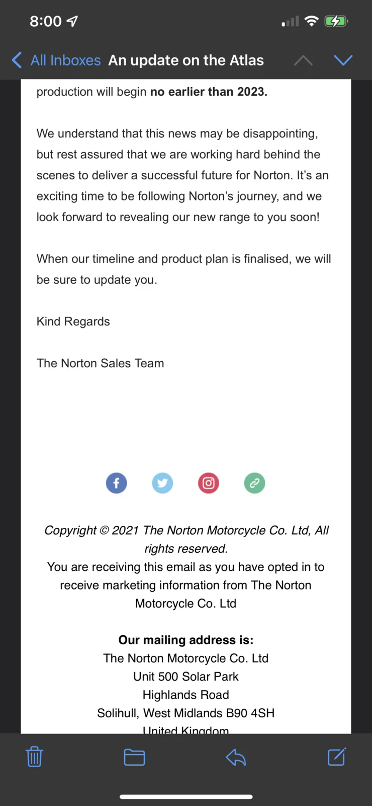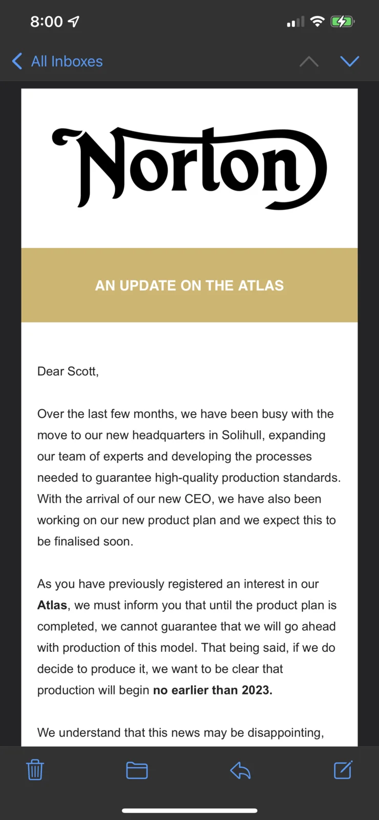 The longer they take to decide on any model, makes it more likely that it will likely never materialize.“It’s an exciting time to be following Norton’s journey”…