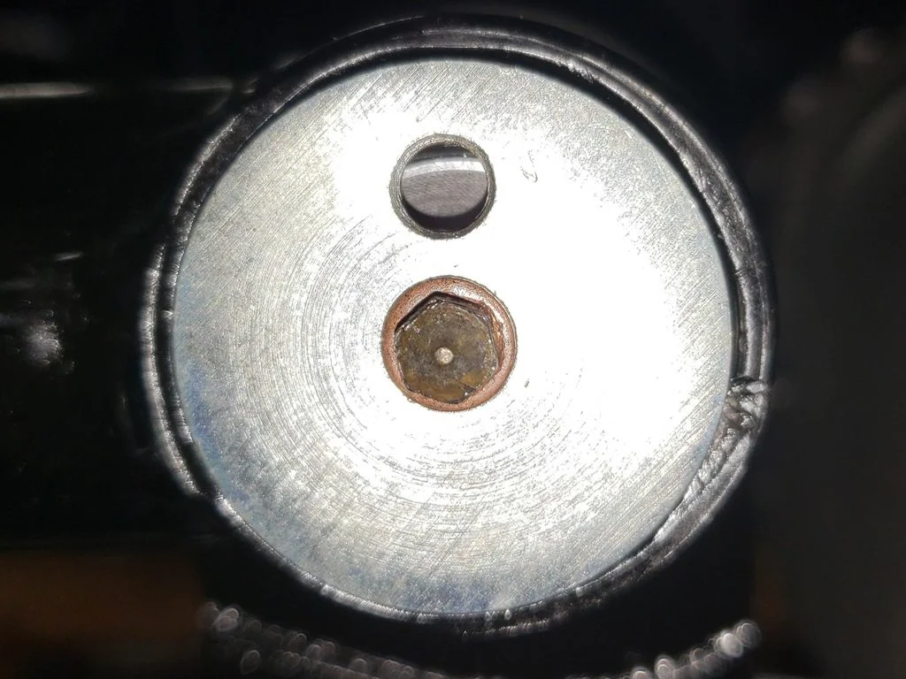 In the first picture, the original is on the bottom, the AN version is in the middle, and the local auto parts version is on top. The second picture shows how far it can screw in until it hits the edge of the spindle - the AN spindle kit was used along with new AN end caps. Once it hits the spindle, more tightening moves the top out causing the end plate to not lie flat and leak. The third picture is looking through the hole with the center bolt tightened enough that is does not leak.
