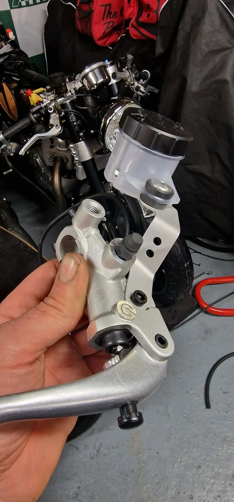 Ive also got a pair of different Brembo radial master cylinders now to go on it, same style as whats on many Ducati's, with the reservoir mounting bracket attaching on the master cylinder its self and not the clamp bracket. This will bring the height of the reservoir pots much lower down, and also in towards the centrally mounted clock. Once my new brake and clutch lines and here (had the euro 3 lines remade into black), I'll fit them up and photograph them. Also got some Norton reservoir caps being manufactured for sale...so watch this space.