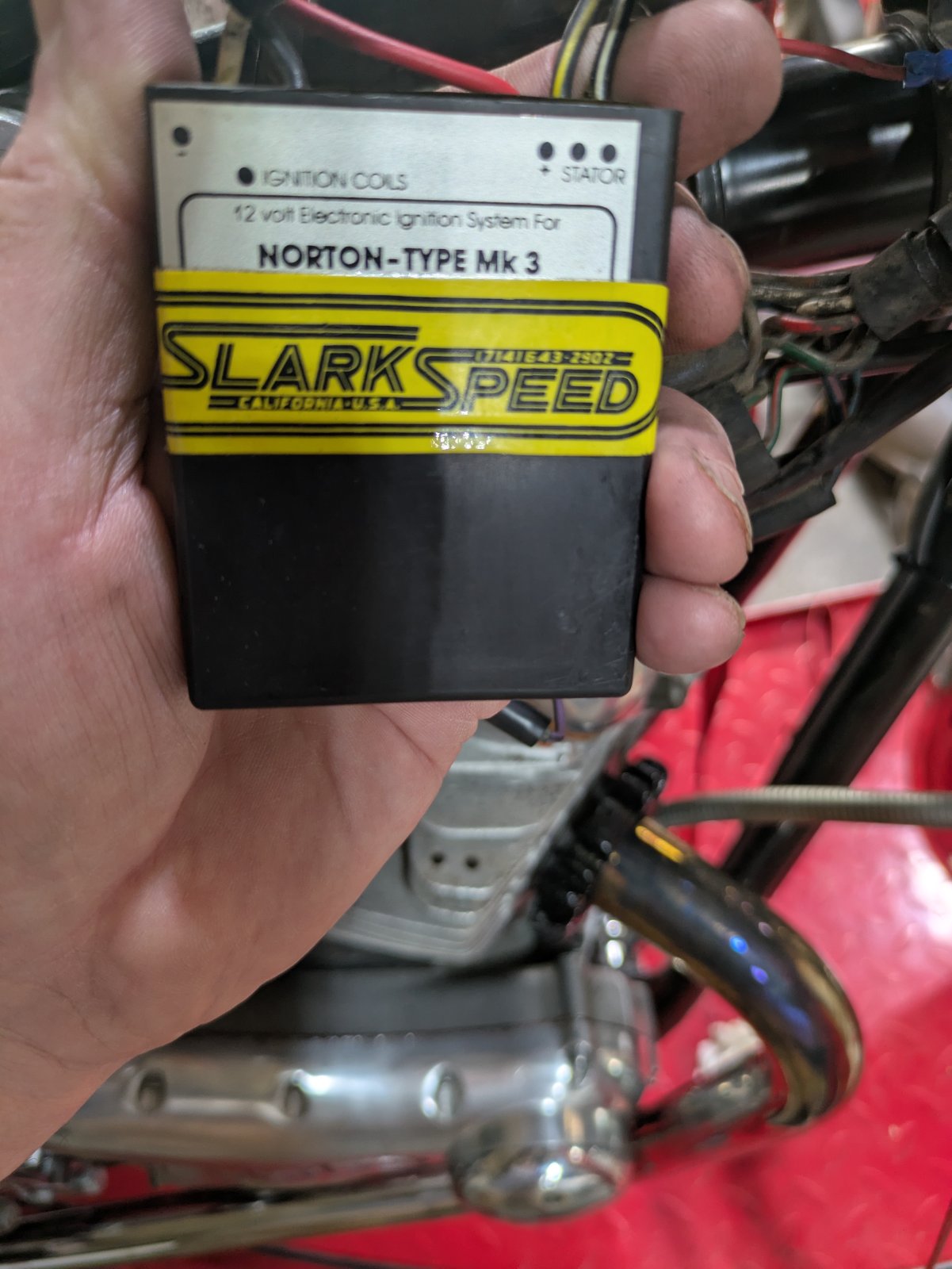 During my rebuild of my 1973 Commando Roadster, I continue to make discoveries of components and work that I did decades ago. In replacing the wiring harness I removed the Boyer black box and discovered this well preserved sticker that dates it's origin somewhat. I purchased it from British Marketing in Laguna Niguel, CA when I lived there during the 80's. I'm thinking it was about 1985 or so when I upgraded the ignition system and when Brian Slark still owned British Marketing. I know that he sold the business not long after that.