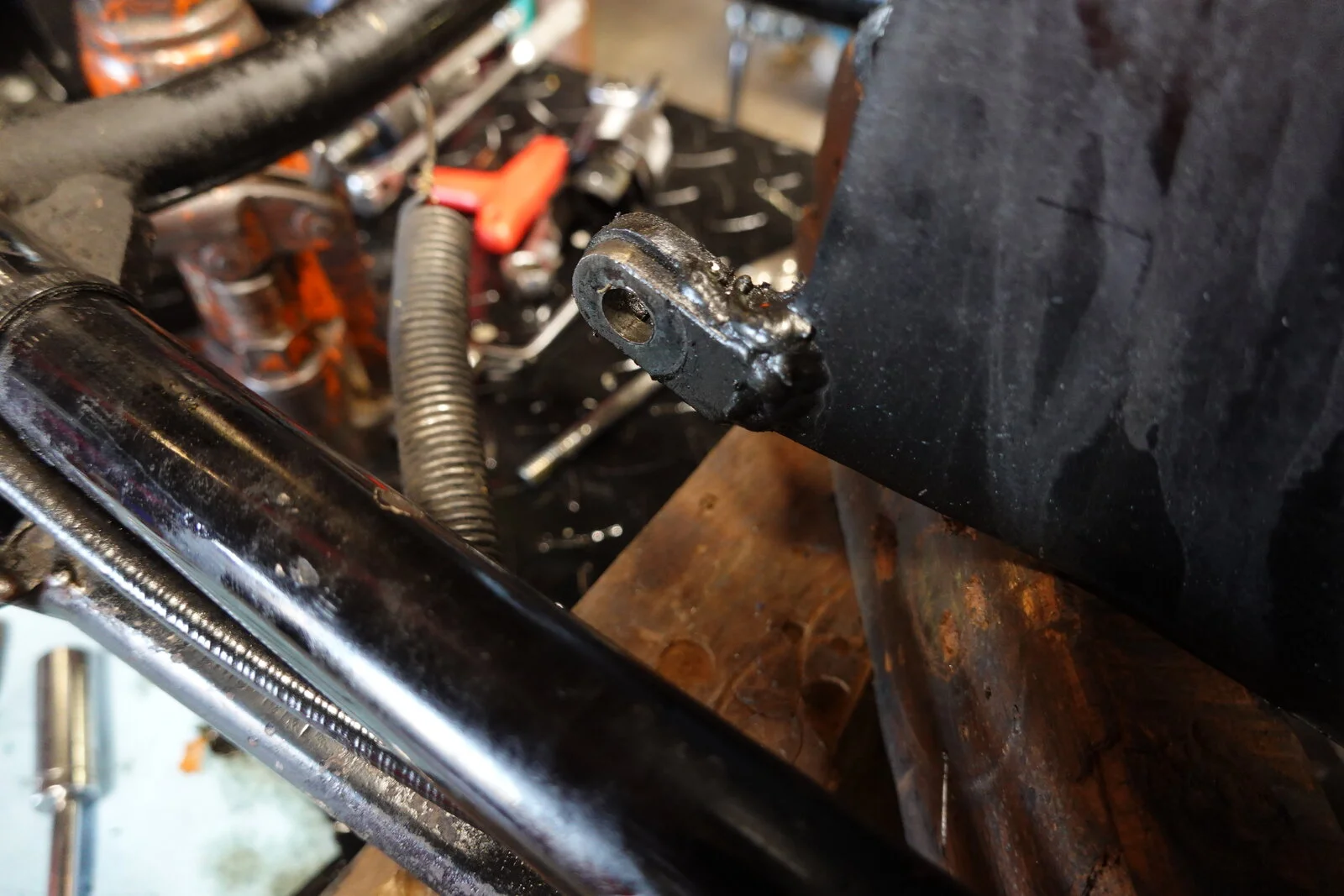 Textbook things that go wrong on a Norton. I bought this bike with wiring and I think trans problems. Trans was something simple, the wiring was typical wiring screw ups. So I have been riding it a good bit, may I say the word "dependable'! See pics bad connecting rod, side stand missing the bushing, top ring upside down, head gasket assembled with no sealer, cradle cracked and poorly welded. The ignition seal had the spring for the seal rolled out. The inner primary was hitting the swingarm, bad! And I'm sure not the last but new fork tubes installed without the "O" rings in the headlight mount!