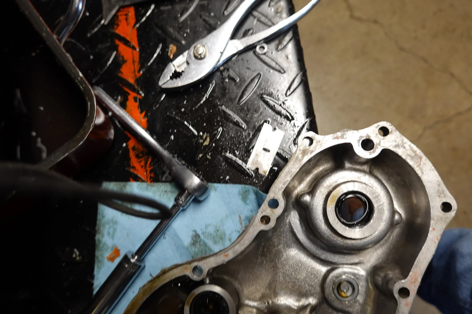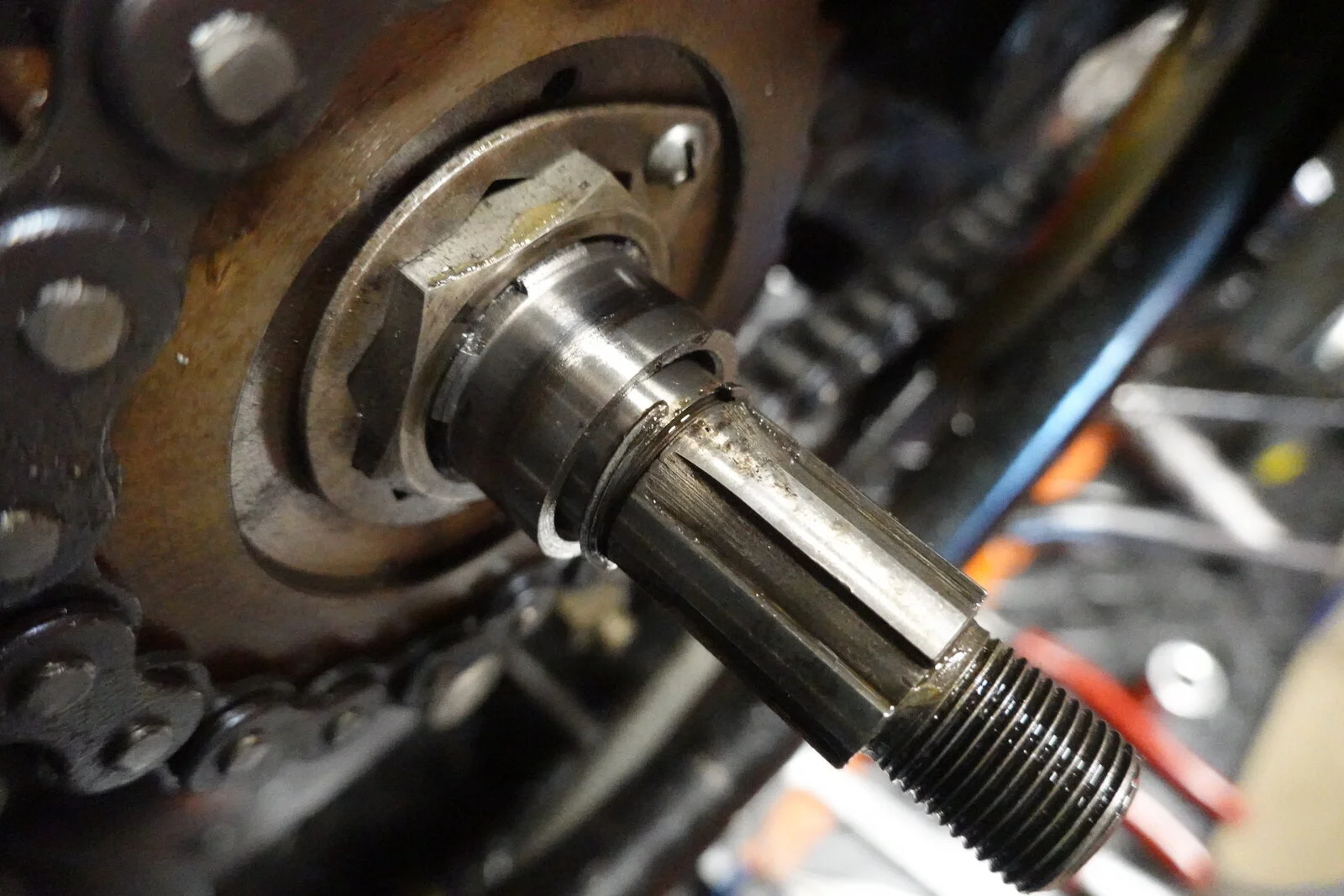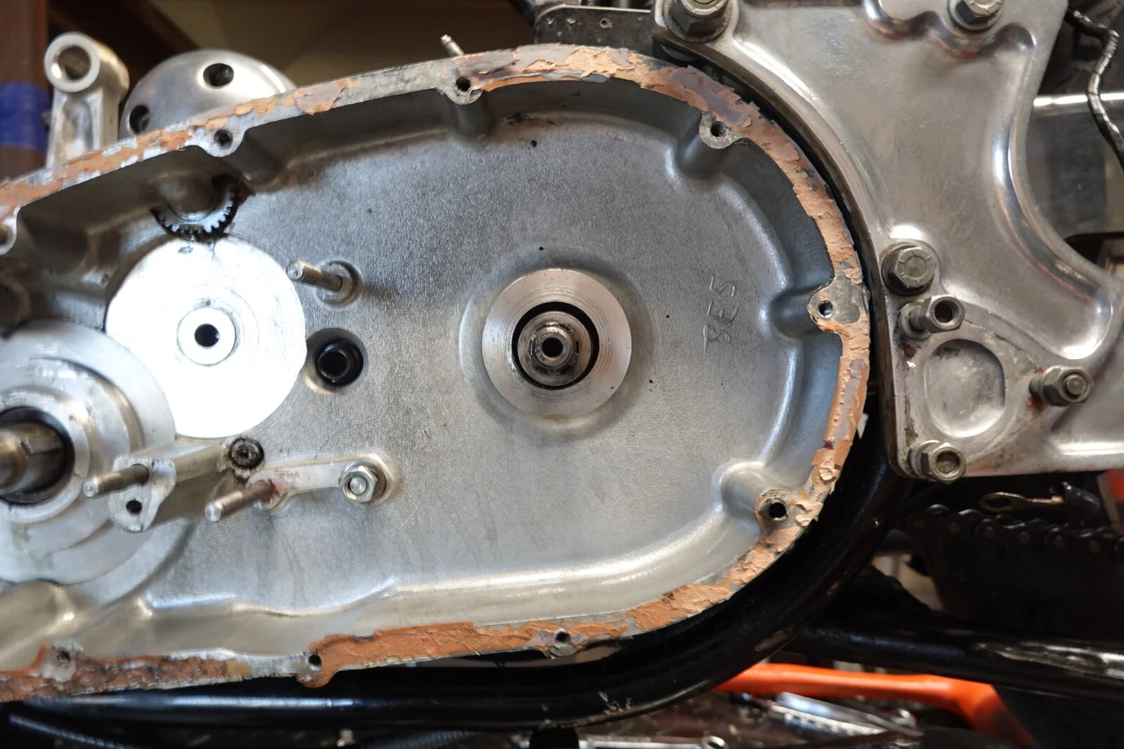 See pic of the trans/clutch shaft in relation to the inner primary cover. Is there a "fix" to center it in the inner primary? Is it as easy as bending the center bolt?