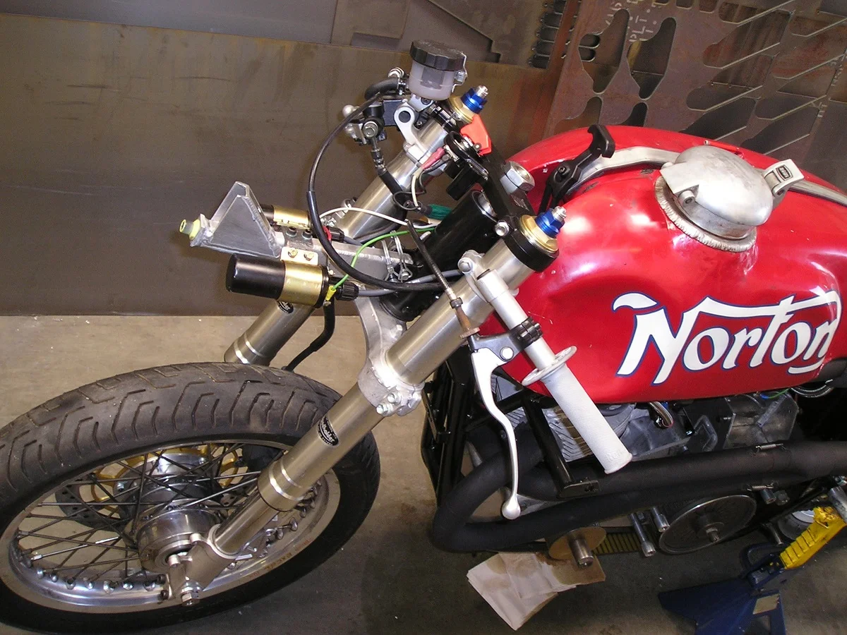 This winter's project it to fit a set of Showa 43mm forks. The biggest PITA about it is welding a set of lugs for the fenderstays without warping anything and fabbing headight brackets with stock ears and oversize tubes. I'm going to put RoadHolder badges on them.
