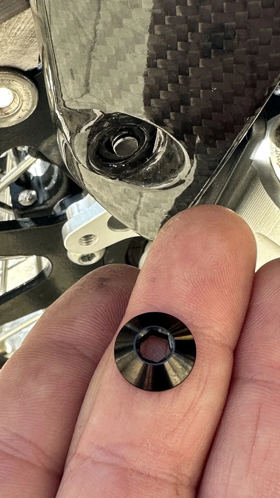 Now this scares me and made me think if I should continue to replace the rest of the bolts on the bike to the titanium bolts or stop. For now I stopped as I never saw a bolt brake like this and almost no meat between the bolt head and the thread.