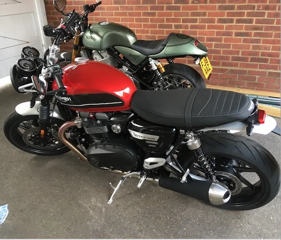 The Thruxton RS would be the version I’d get if I were wanting a Thruxton. More hp. Less weight. Better components. But I already have a Commando SF and a Dominator Naked. I realize the 961 doesn’t have the power of the Thruxton, But I kinda want a two up bike, even though some of what I like are not 2 up and the few that I like that are 2 up wouldn’t be comfortable for a passenger.The Speed Twin is ideal if you need a two up bike. I like the styling but find the Thruxton more appealing.