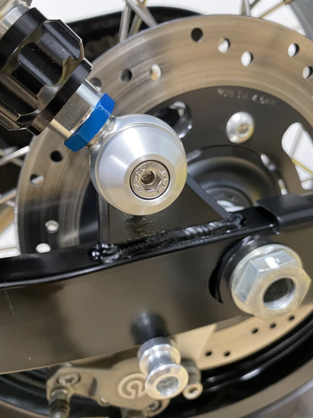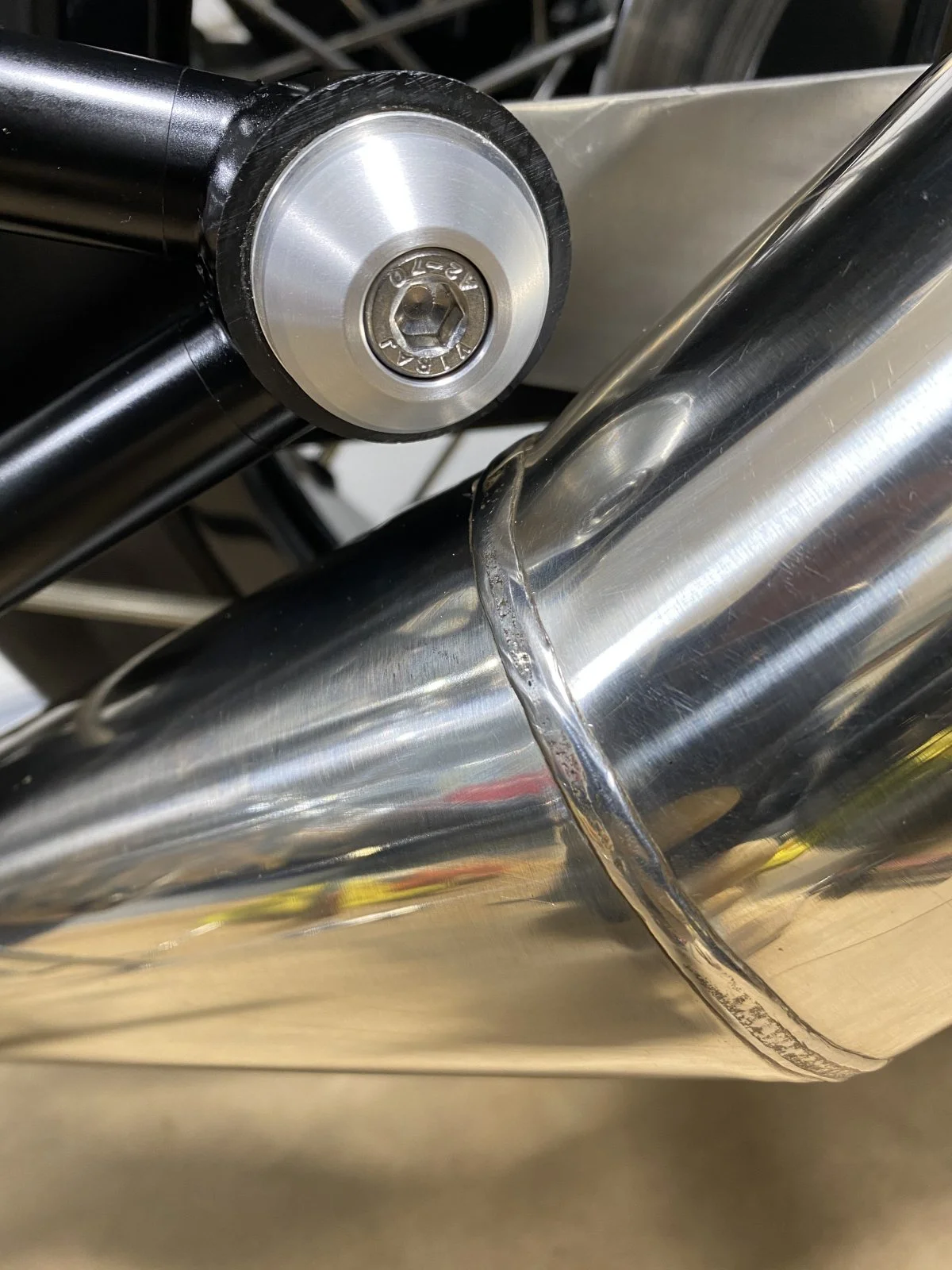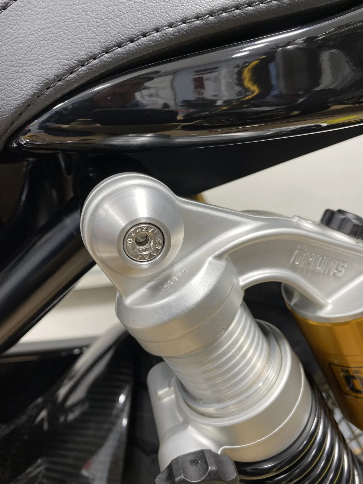 Got these Shock upper and lower along with the muffler hanger caps. Made of billet aluminum and clear anodized. Got them from Ollie at Thiel Motorsport. They also include new stainless hardware.