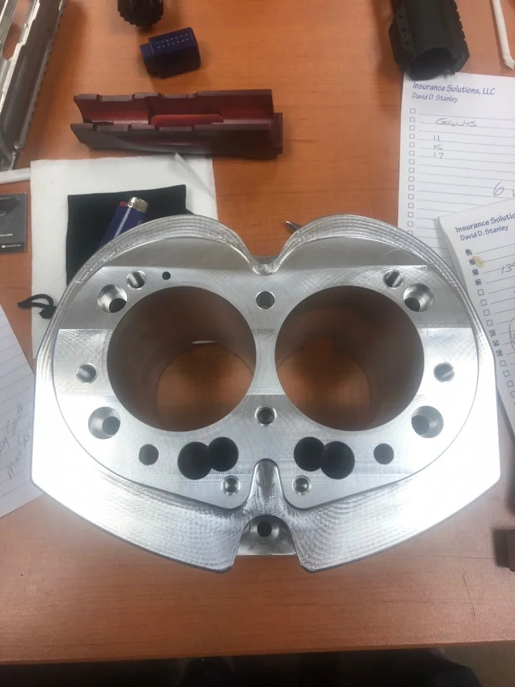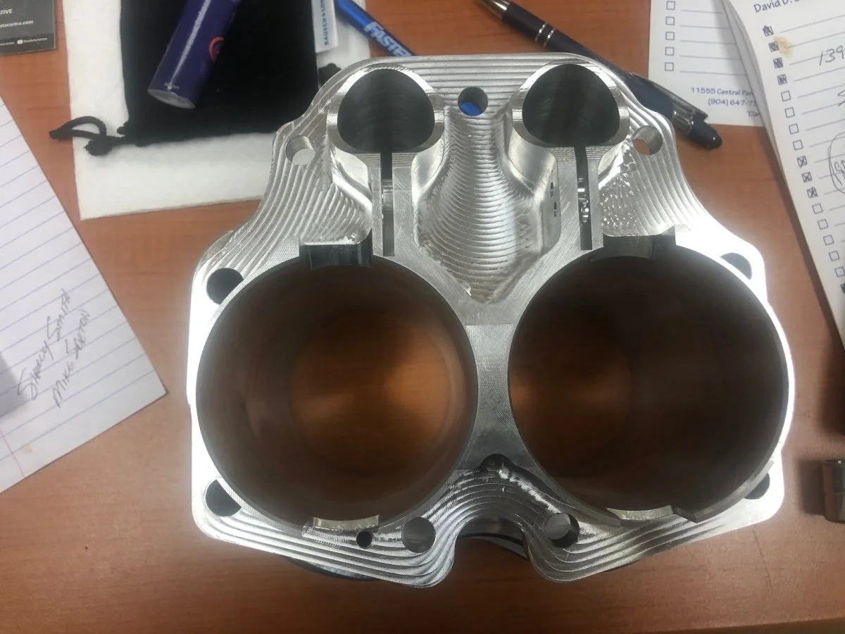 Update on New Projects: First 2 prototype billet 850 cylinders are off the mill. a little deburr and vibratub finishing (so if you have comments on finish or chatter marks, they have not been through post production yet, nor had the CNC programs edited for optimizing tool path), and then we will do an assembly to ensure fit. Then off to millennium for Nikasil. Parts for the Mark 3 Sprag upgrade are in their third week of testing in the shop. So far 2,000 sprag engagement crank cycles. Three kits are in Beta testing in the field. So far, excellent results.