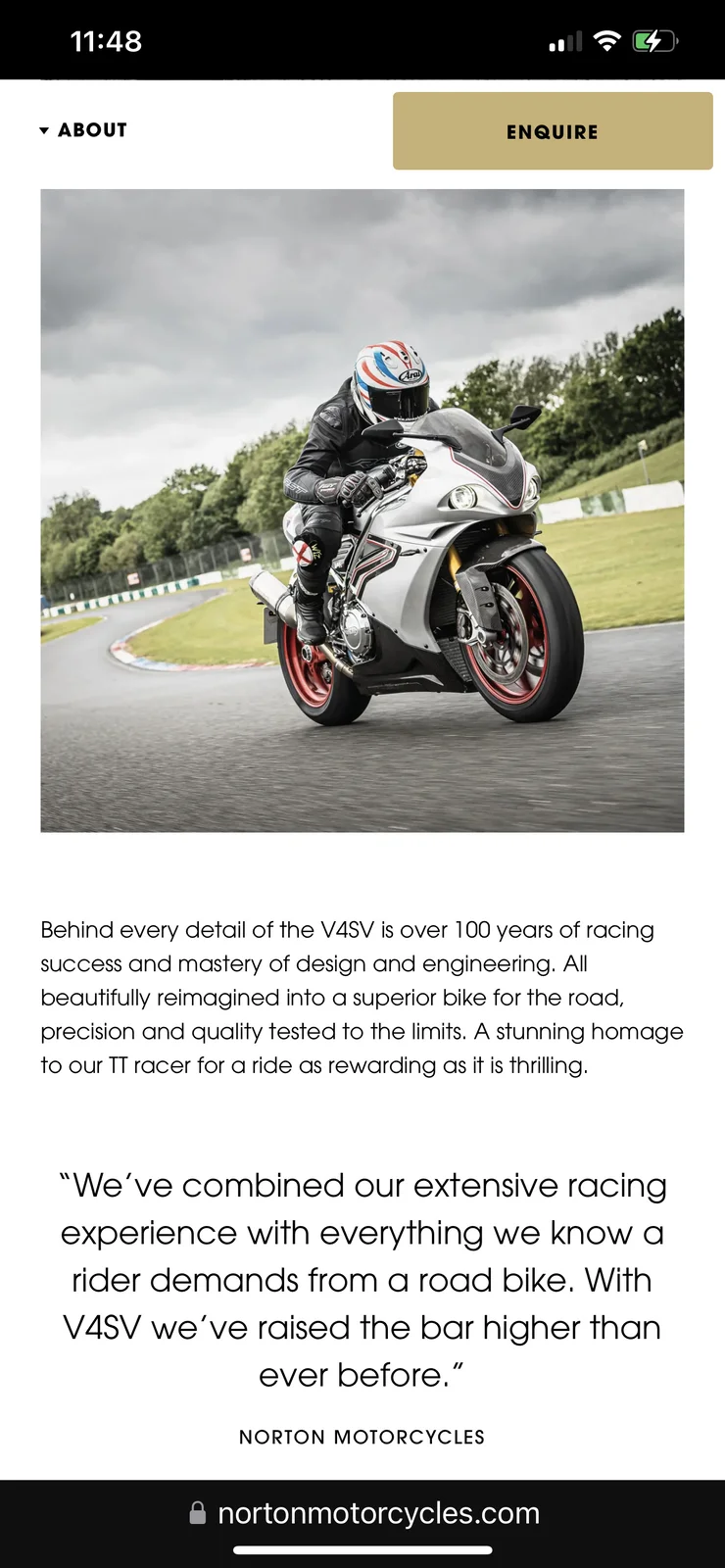 I really can't see where the £42k has gone tbh. They "inherited" the V4 when they bought the company. The previous reasoning for the price tag was its a bike developed at the TT over several generations of race bike etc etc blah blah blah. But TVS have done none of that, they've just picked up where Norton left off, essentially with a bike that was 75% there. For me, it's still a beutiful bike and if the TVS version rides like the Donington version, then the chassis will have excellent road manners....hopefully they've tuned the fueling though, as that was pretty "raw" (a term used by journalists when they're saying something aint finished yet).