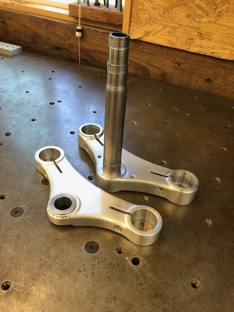 More projects slowly getting checked off the list: Yokes, triple trees, whatever you want to call them. I've had the drawing and intentions for these for a half dozen years, but things take a while..