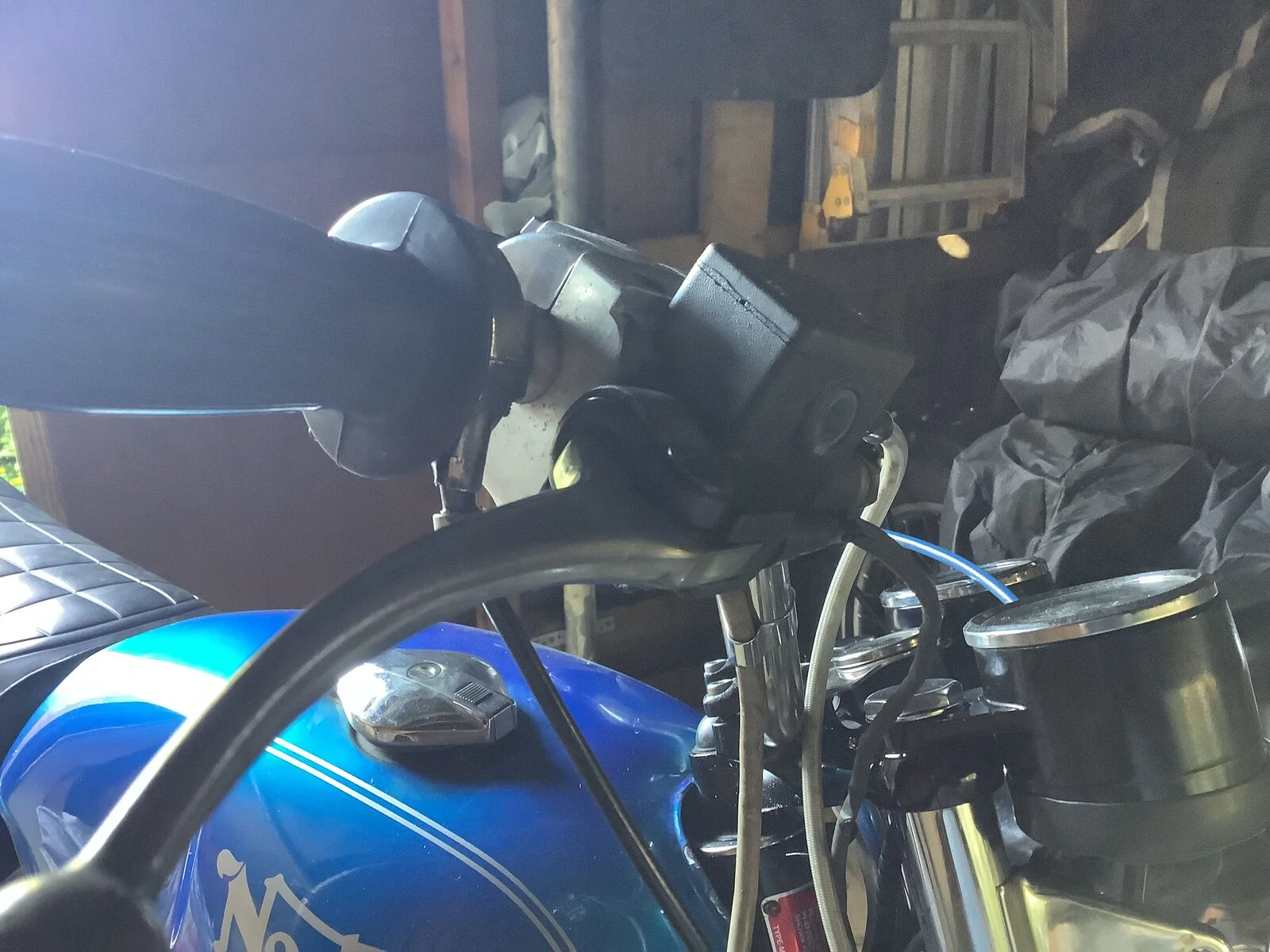 It has correct switch mounting incorporated, and a rectangular reservoir. Matching clutch lever also available. Very reasonably priced.