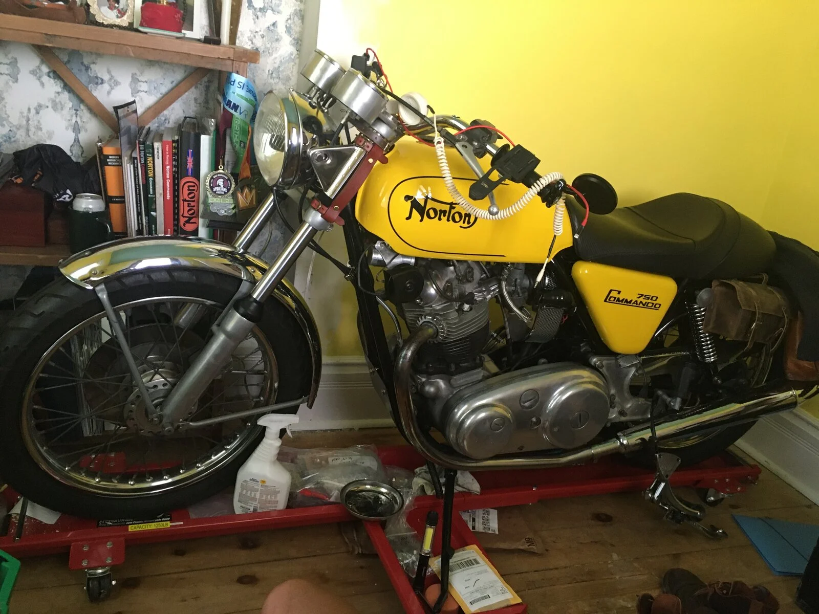 Yup. Vintage. Both of them. I should have mentioned that I have two. The 850 that I ride around and recently took my wife out on, and the Combat that I've been restoring... Here she is, Ginger, in my office being worked on slowly.