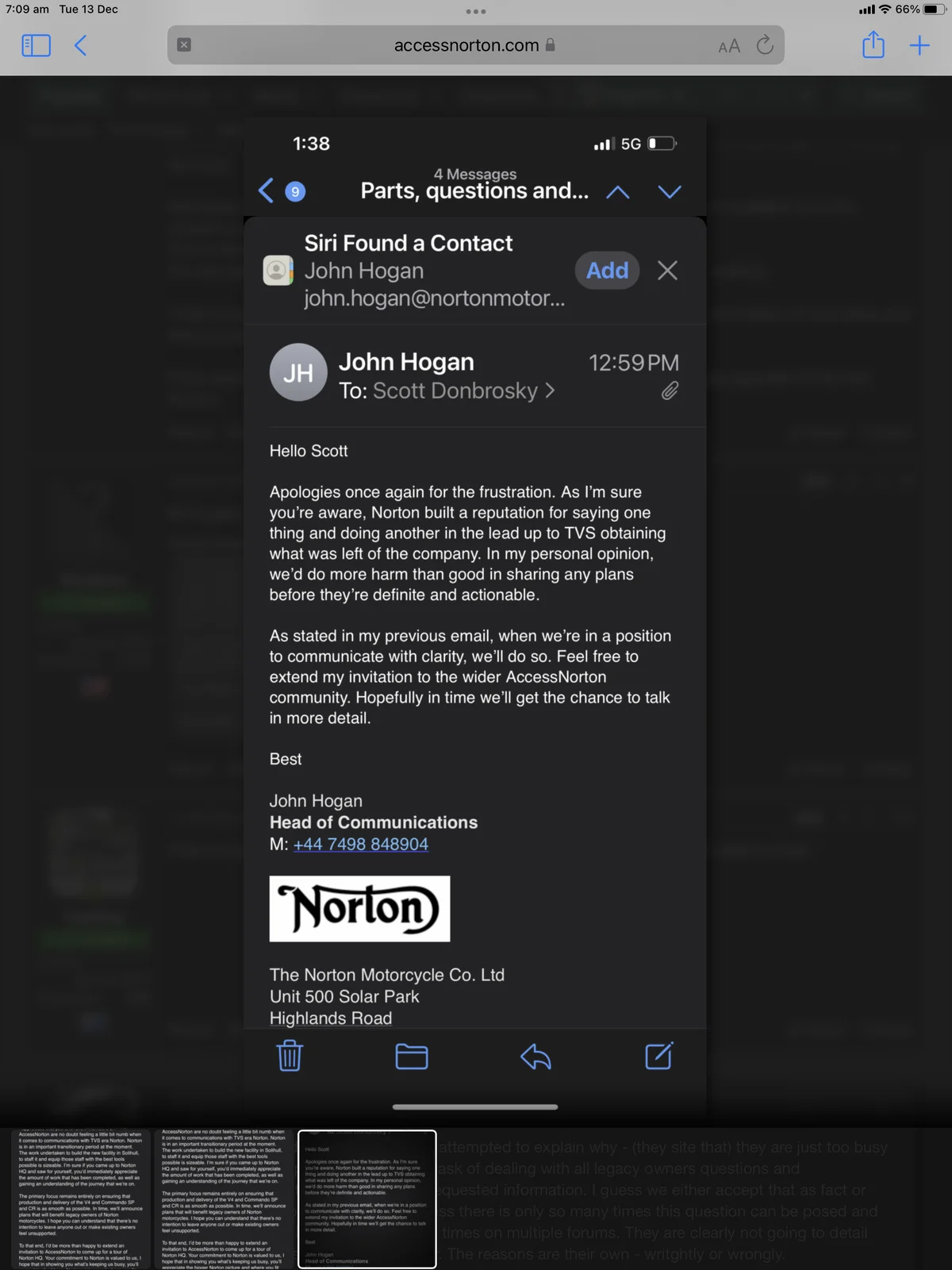 Hi Scott , I just think how nice it could have been if TVS Norton would have brought us (Donington 961) owners along . What I mean is give us a grace period of parts supply and then we would have been right there for them to buy a new bike. As the new Commando evolved most of us would have been ready for a new Commando by then. Now , I am just unhappy and frankly scratching my head again. These TVS folks have made a faulty calculation if they leave us without spares , just saying .They have a 10 year plan and 4 have already passed by.