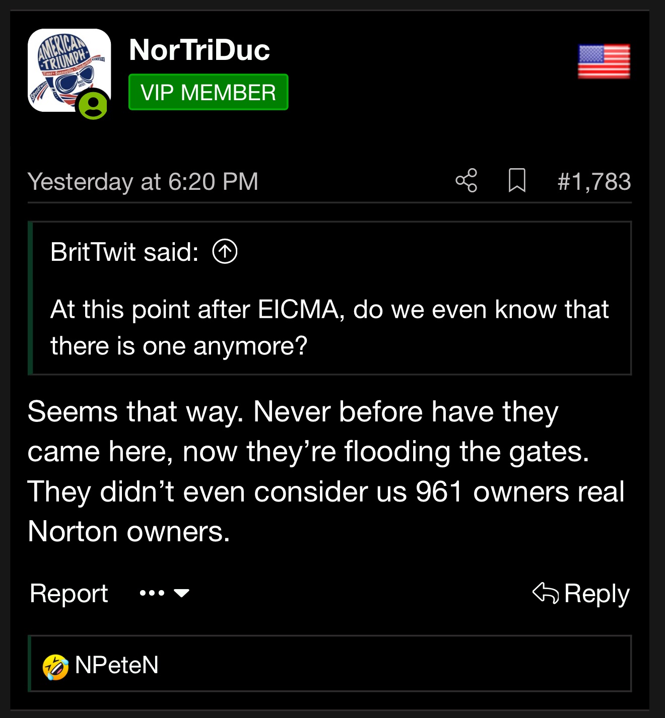 Just because modern Norton 961’s and now the V4’s were made this century, doesn’t mean they are any less Nortons. But apparently they are because you say so.