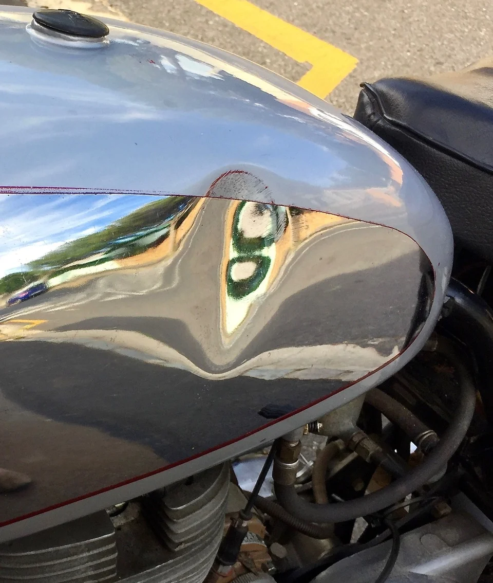 It is in original running condition but would be a great rebuild project. It comes with a set of racing drop handlebars and spare carb. It has a ding on the LHS of the tank as shown. It has always been stored, covered in a garage.
