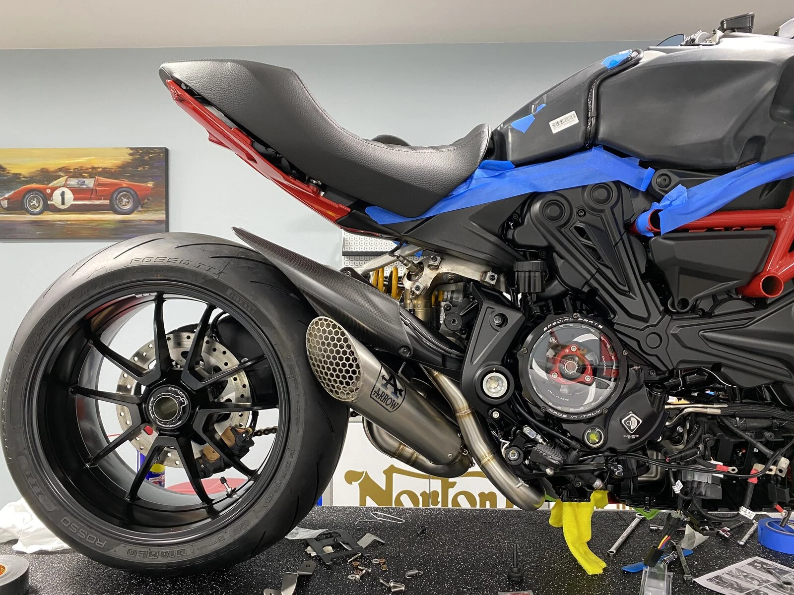 Is that painters tape you are using to protect the finish ?That’s an Arrow exhaust. Same muffler that’s on my ducati.