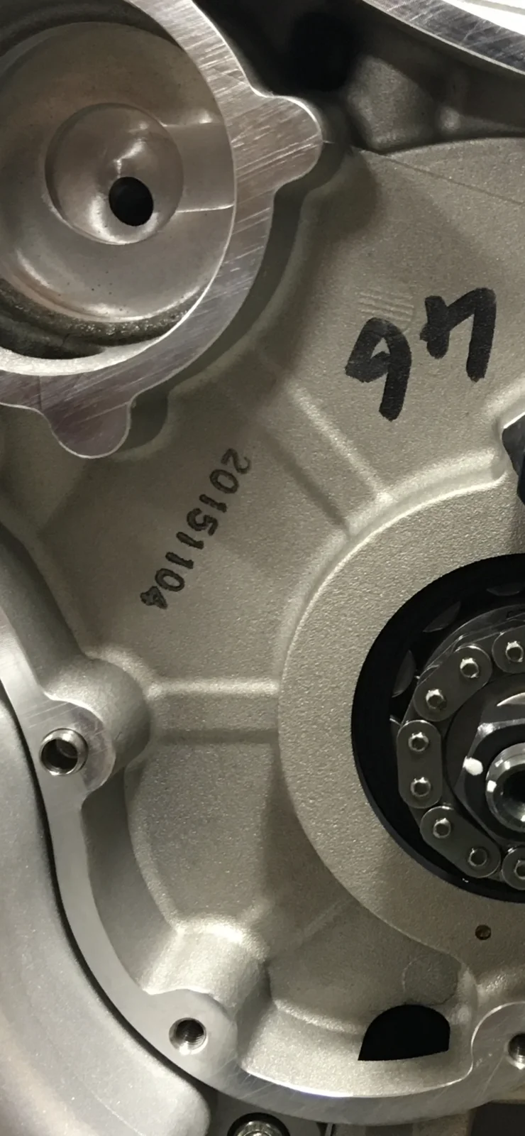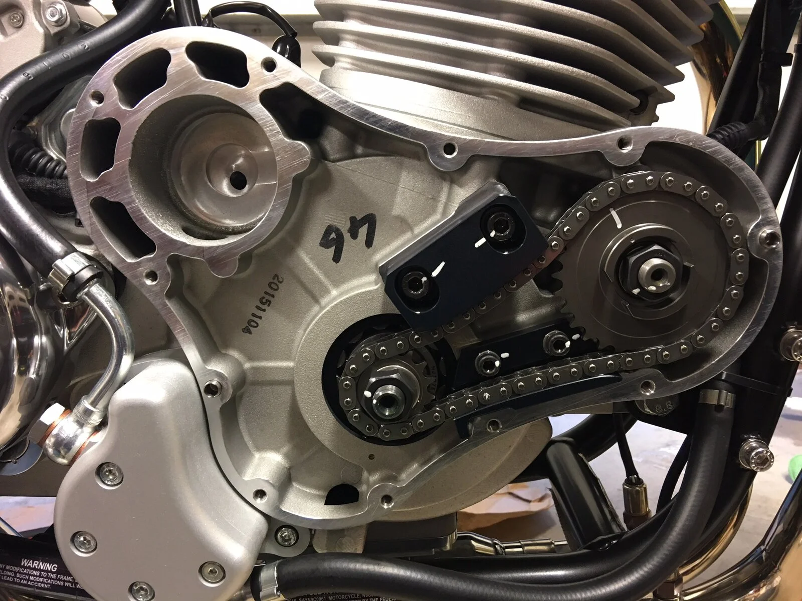 Then on to the cam chain tension. Wow, that's pretty tight I thought, but then looking closer I spotted something strange and alarming. See if you can see what I mean. I've put the picture on Google Drive so you can zoom in.