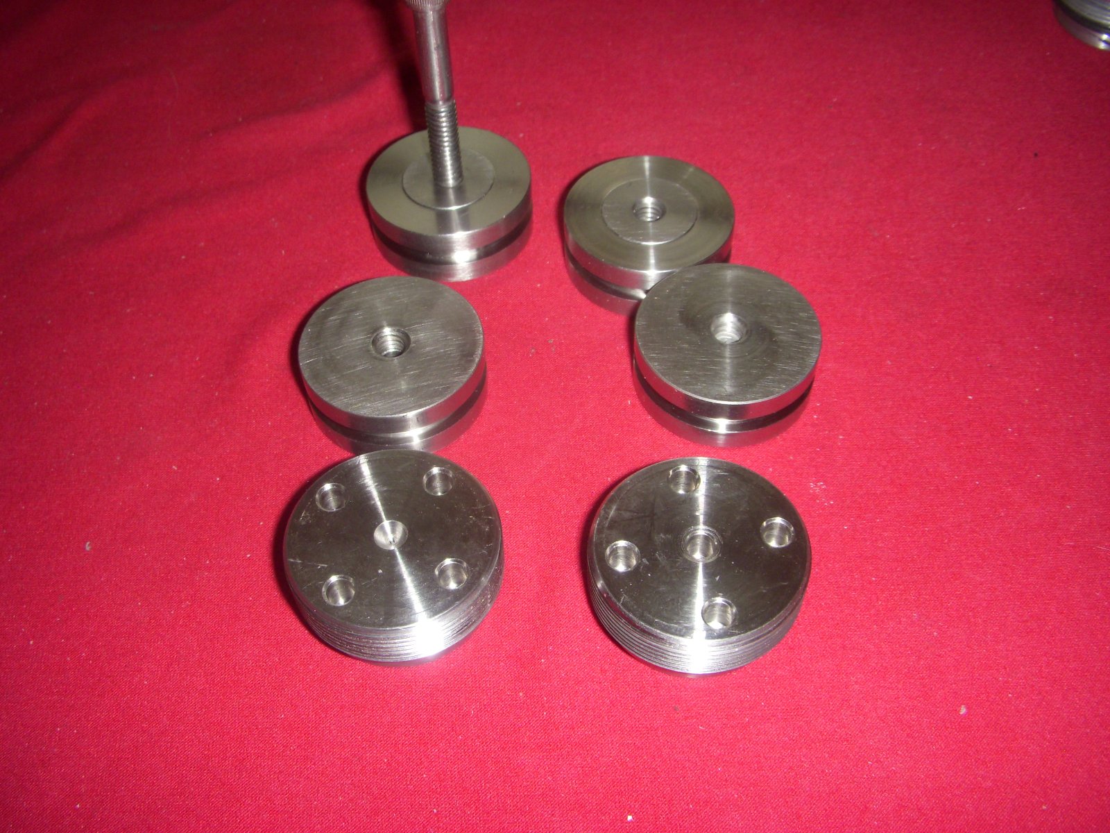 THESE ARE ALL STAINLESS STEEL. CAPS.. PISTONS ARE MADE SPECIAL IN AND OUTER AS TO USE A 1/4 20 BOLT TO EXTRACT IN FUTURE. IF ANYONE KNOW AS EVER WORKED ON THESE FORK LEGS, THEY CAN BE A PAIN IN THE ASS TO TAKE OUT SOMETIMES. THEY TAKE THE STD ORIGINAL TYPE ORINGS