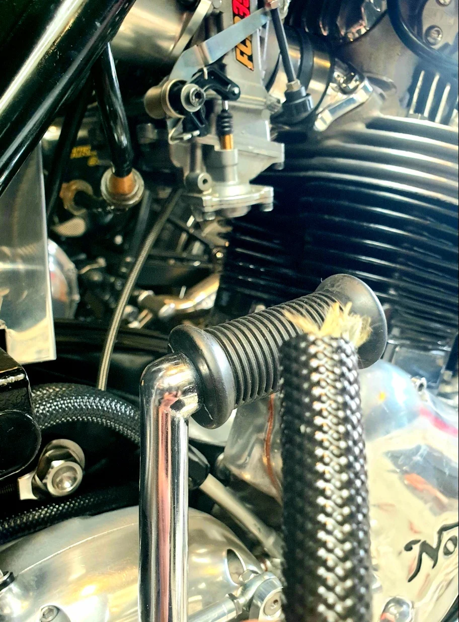 What ignition are you running...it wouldn't happen to be a pre MK IV boyer by any chance ?Yeah Baz, I imagine most of you guys have been here a few times, and those that have experienced more than a few have opted to install the electric start...That's next on my shopping list for my Commando, or just get the position right next time. I guess somehow I got the stroke wrong and air/gas ignites in the airbox/cylinder and kicks the starter lever back at you. These RGM levers are a little worse for this as they increased leverage for us also means increased leverage for the bike and when it decides to slap you back it really gives a good whack! Anyway, now I know why there is an insistence on solid workboots. I wear Redwing boots usually - I have a few pairs (many actually). But this time I wore a more casual leather boot that I wear around the garage when I'm working.
