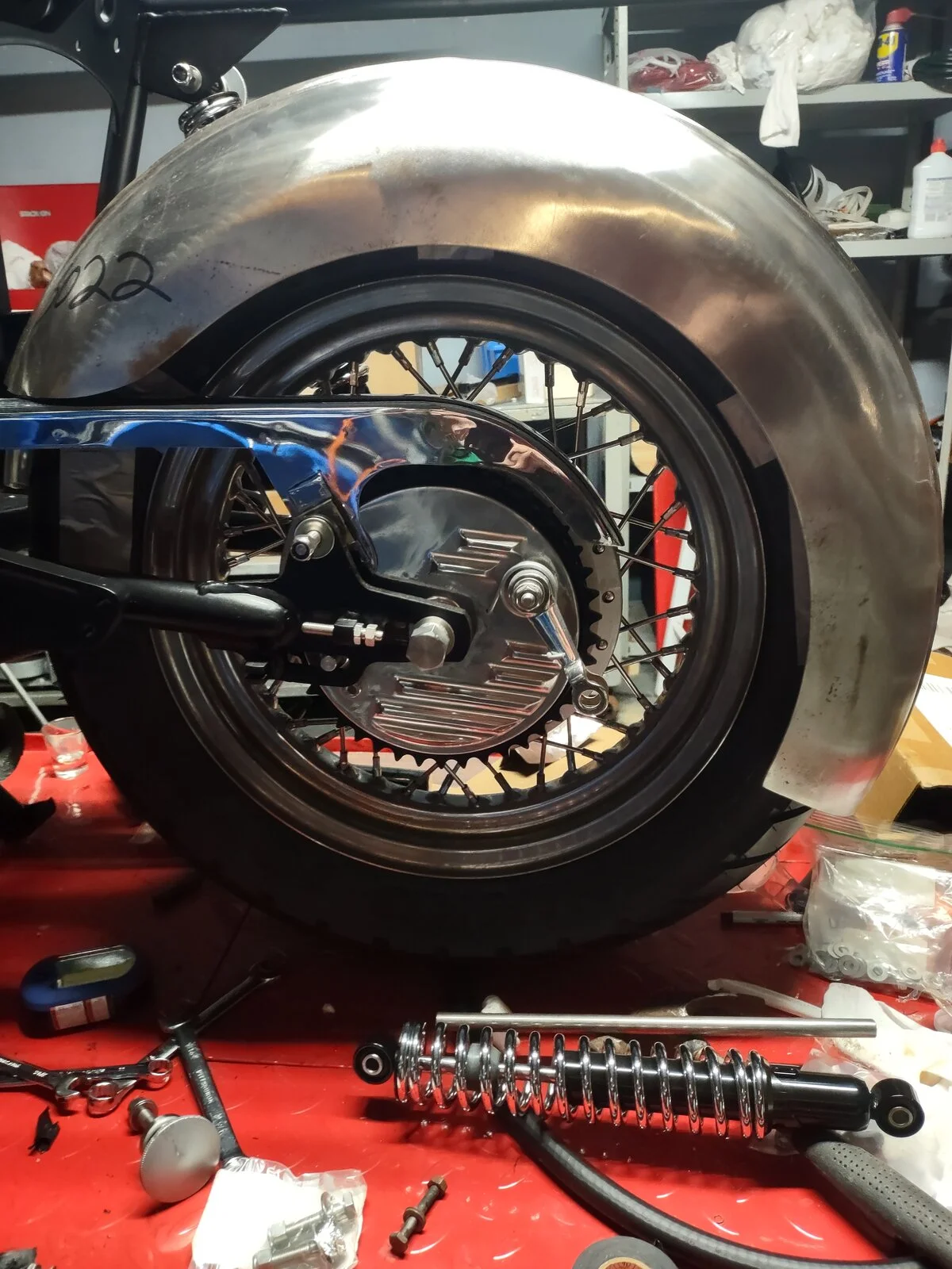 Hi. Yesterday i fitted a pair of U-Beaut new Icon rear shocks to my 1969 F/Back after 30 plus years on a set of Hagons. Finished the job, turned the rear wheel to make sure no nonsense and it turned by hand then stopped. Turned it the other way and about a 1/4 turn it comes to a soft stop! Did it a couple of times , thinking expensive gearbox damage and walked away. This morning removed joining link to wheel it onto workstand. Pulled plugs ,put it into 2nd and rotated it with kick start. Chain fell out along with 3/8 shockie flat washer! How the hell it landed on the top of the chain right on centre? Could see marks in the centre of washer where the front sprocket tooth had speared it. Why does God always laugh at me?