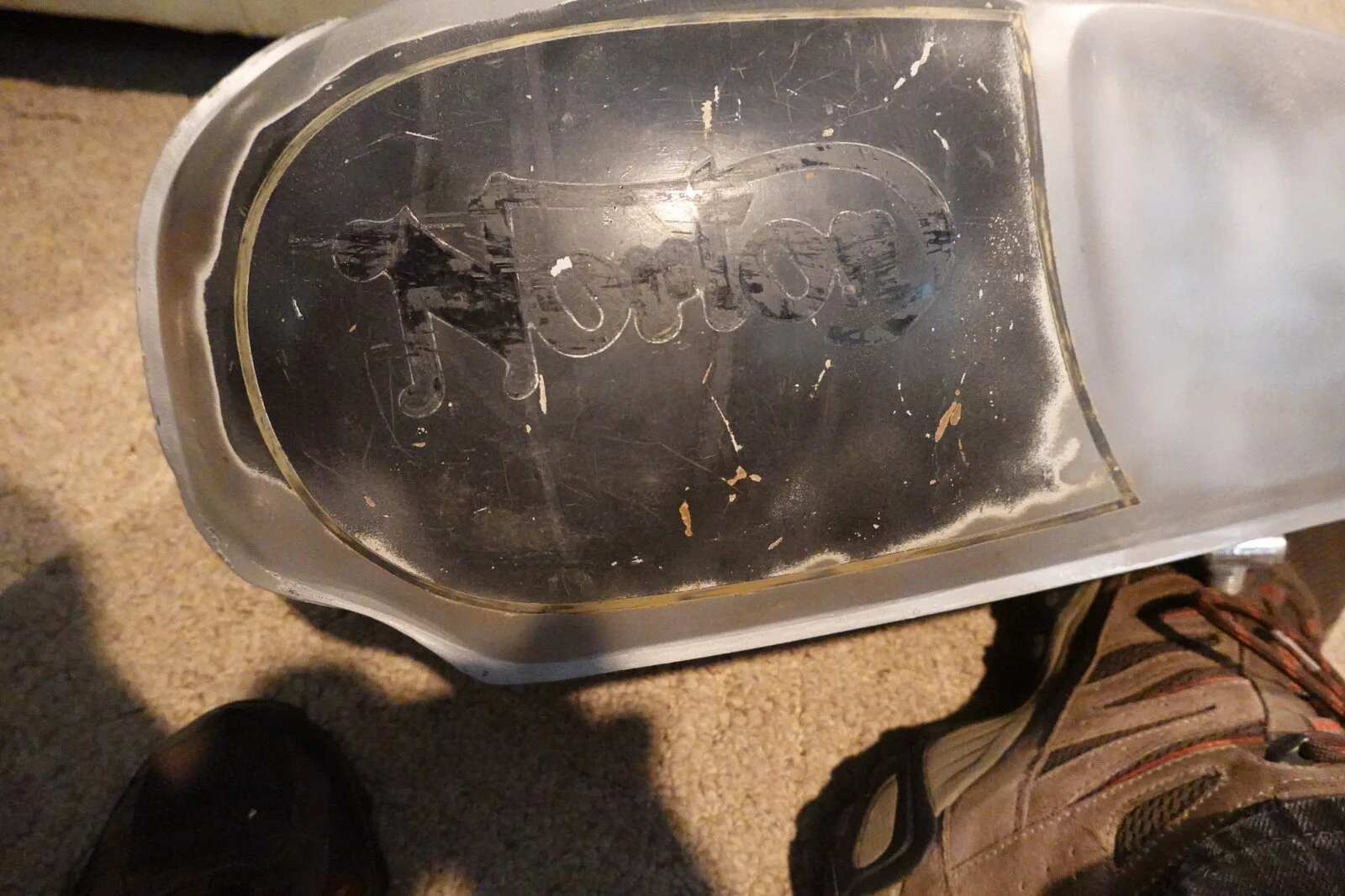 nice , was the black paint kind of moddley?Here you are - pics taken before repaint. Stripes were indeed hand painted. Note that on mine the Norton script is not centered in the “D” but somewhat higher .