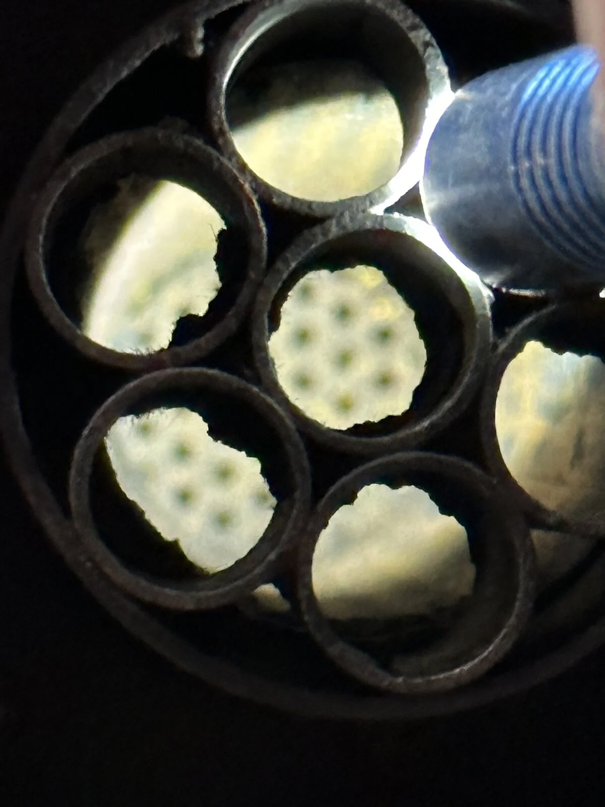 Mine has the same muffler, actually I've never looked right down like you show ? , mine had the back cut off the gatling gun , and i added 250mm of perforated tube and wrapped it with 50mm fiberglass tape , and wired it on with .032 stainless wire , it was very loud before and the tube mod took the edge off it , I had ear plugs and a helmet and I was upfront of the outlet , didn't sound too bad to me 😁 , I was cleaning it this morning and the muffler had a bad rattle , the bolt in flange had cracked 360 degrees and it had a 12mm chunk missing , all TIGed up no problem, I probably need to make it longer to gain support from further down the tube either that or make a thicker flange . Cheers .
